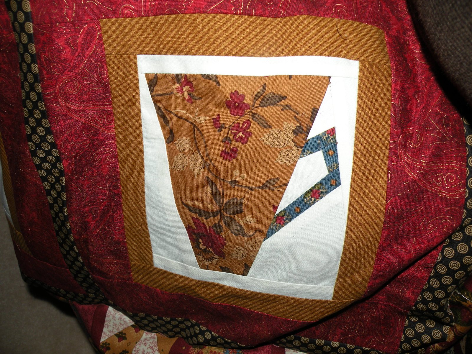 This is the last of the retreat quilts - Marsha completed one block at our retreat - (mainly because she was so busy sewing on a binding for Moi!) now she has the entire quilt put together! She designed the pattern, all paper-pieced, and this quilt is a gift, too! So many generous hearts!
