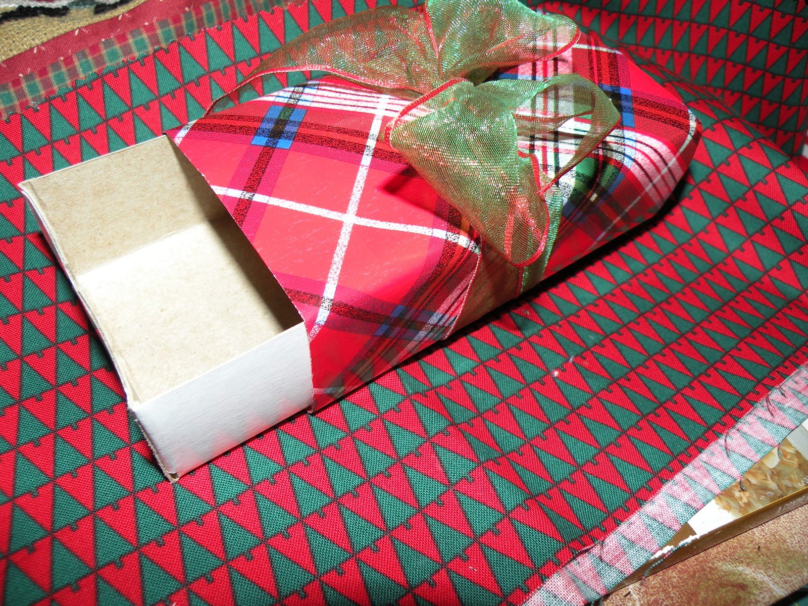 After the bag was finished and loaded with the gifts, I decided it needed a loop so it could be hung up...so I emptied out the boxes and went back to the sewing machine!