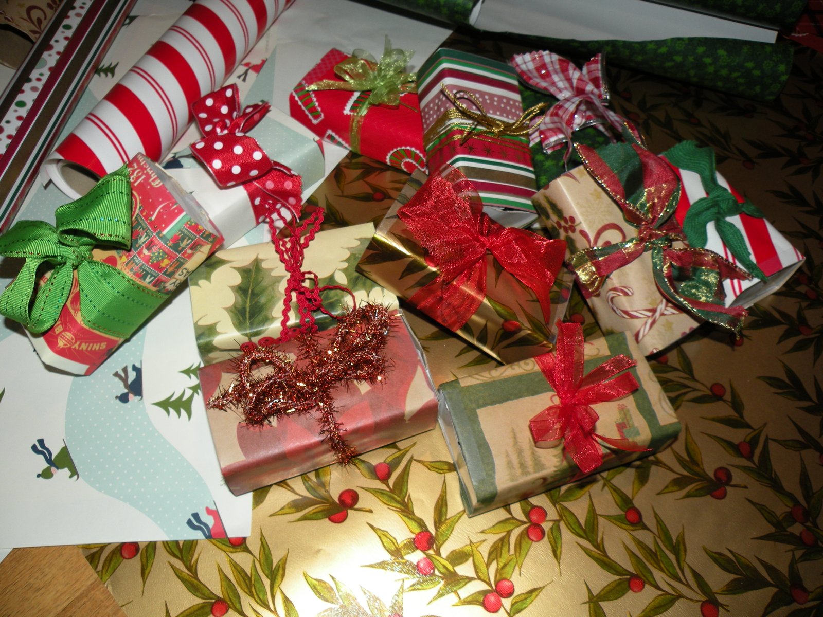 Here's what I put in my 12 boxes: A clip on OTT Lite, See's Chocolate balls, 1/2 yard of cream colored fabric, 2 Moda mini-packs, 1/2 yard of Christmas fabric, bottle of hand-sanitizer, Christmas ornament salt and pepper shakers, quilting pen and quilting note-pad, gift certificate to quilt shop, 2 Christmasy votive candles, package of mini-notecards and last but not least, vintage buttons! Obviously my gift is for someone who quilts, but think how fun this would be to do for kids? Little Match-Box cars, candy, puzzles, and on and on...12 days of fun!