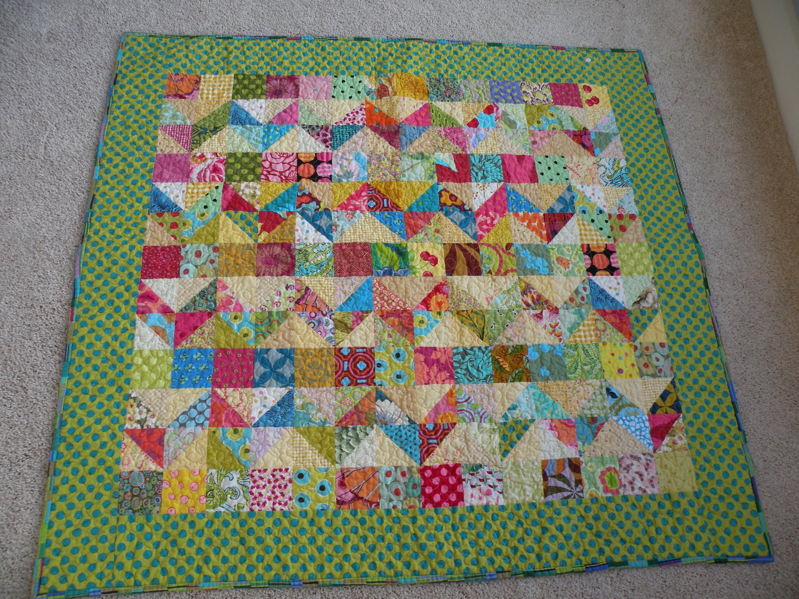 Helen showed us this top in January, and after we oohed and aahed, Helen went home and tore out the yellow - apparently she didn't like it as much as the rest of us! And then Helen did what she does best, she just started sewing, no pattern, no plan, and she came up with the quilt above. I have to say, Helen always knows best!