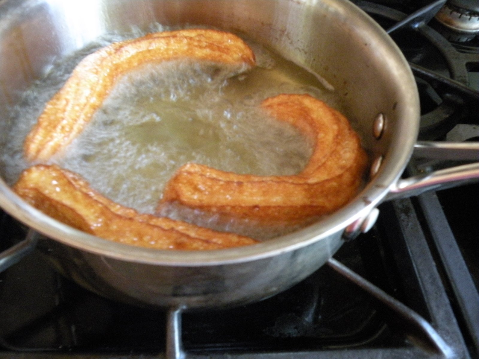 Churros you buy at the ball-park/street fairs or in Mexican restaurants are usually always straight...I had trouble with that, the batter would squeeze out and then curl! Speaking of squeezing, I may have mentioned I have a dress to squeeze into in the near future...I managed to block that from my mind until after I had downed a half dozen Churros...so I suppose I'm in the same boat as those who drank themselves stupid yesterday...I ate myself stupid, but unlike those who are hungover today, who will be fine manana...I will be doing the walk of shame in and out of my closet until my Churro pounds come off! But they were so good!