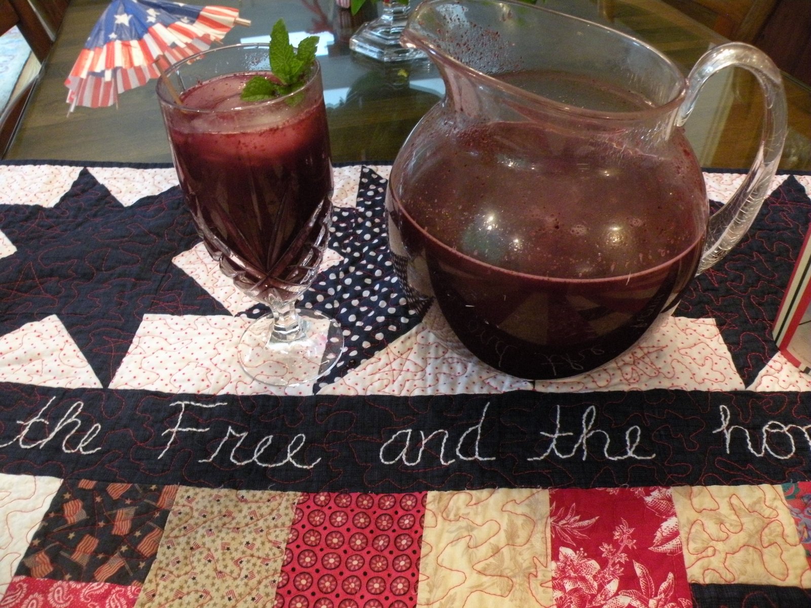In case you're wondering what war the mister is referring to, that would be the Vietnam War that's been over for 40 fricken YEARS! But good to know he's finally out of the jungle...what the #$%& does that even mean?!?! So we're going to our first ever BIG fireworks show tonight! I'm thrilled! In the meantime, we shall spend the better part of today sitting on the deck sipping this fabulous Blueberry-Lemon Cooler, waving our flags and enjoying our freedoms...and I hope you do the same! Happy 4th of July!
