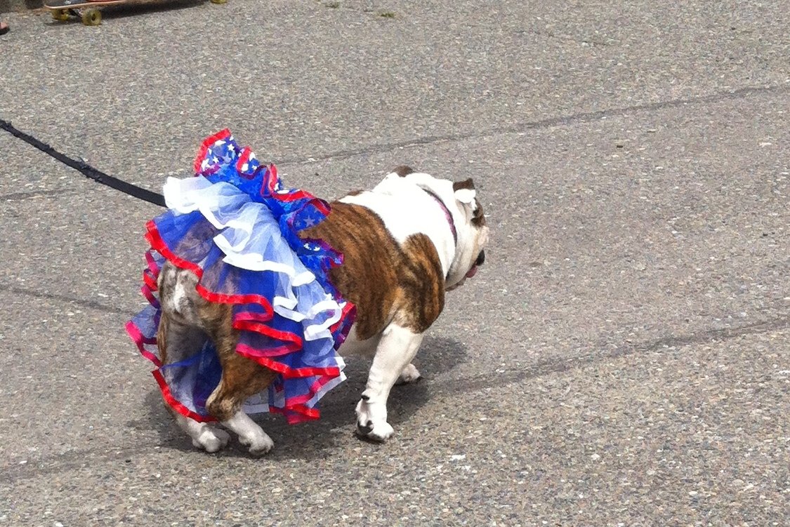 Just take a gander at this little beauty we spotted on the boardwalk...she was dressed for the day and mighty proud of herself! If Caesar Beezer the Wonder Dog had been with us no telling what might have ensued - he has a thing for patriotic pugs!