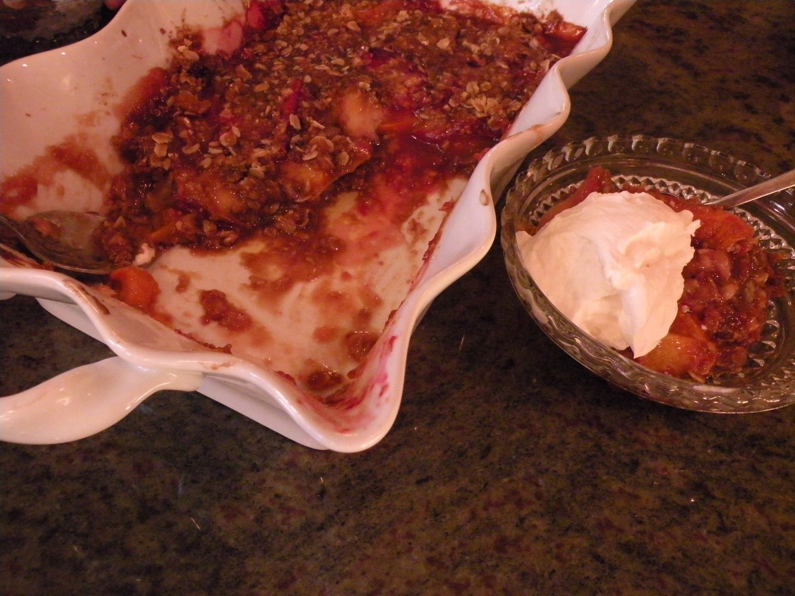 While I like Cobblers, Crumbles, Slumps and Grunts, I really love a good Crisp. I like the crunchy topping with the soft fruit. I used the Cranberry Crunch topping recipe from Joy of Cooking for the topping on this Crisp - it's perfect with the stone fruits.