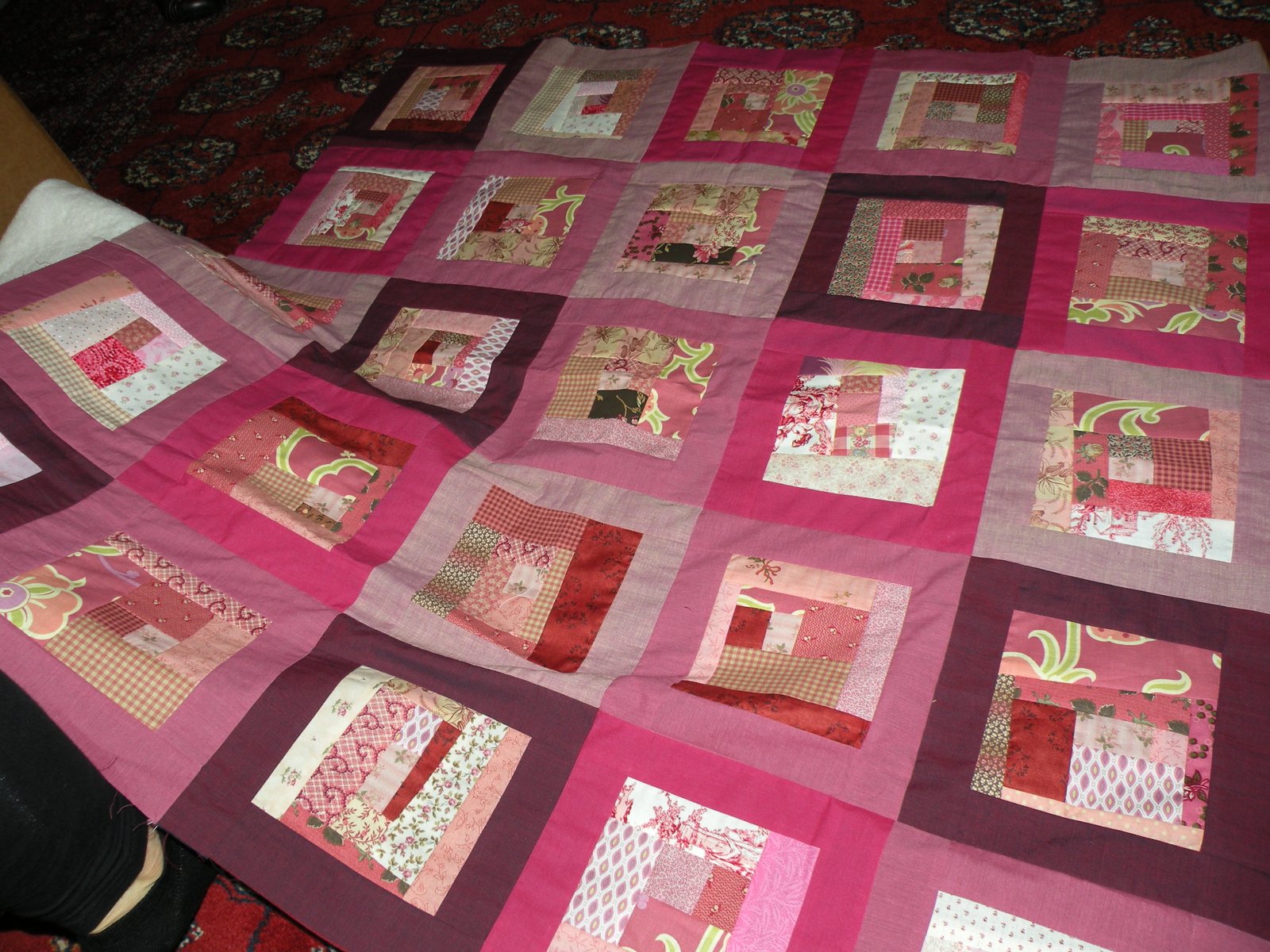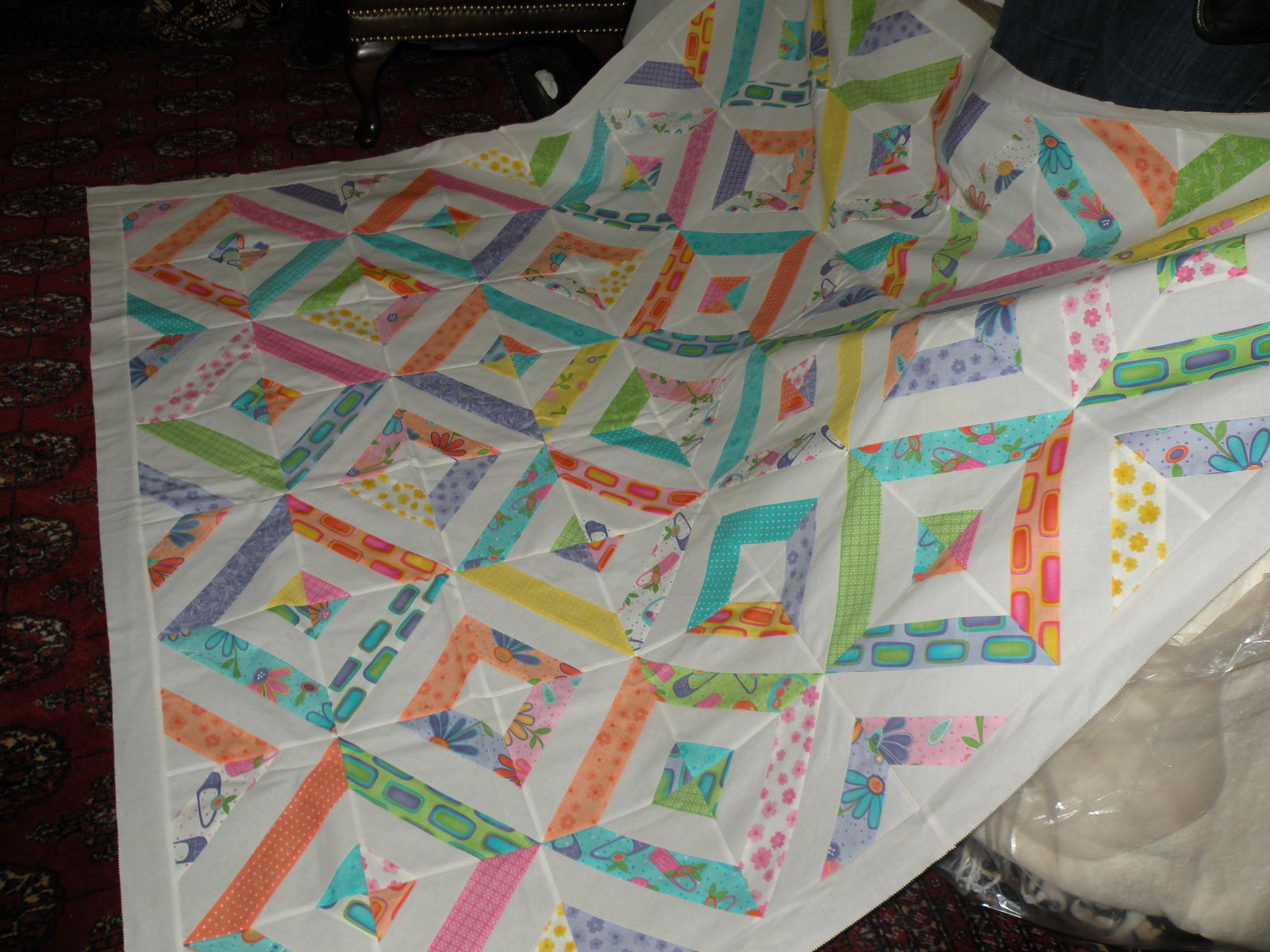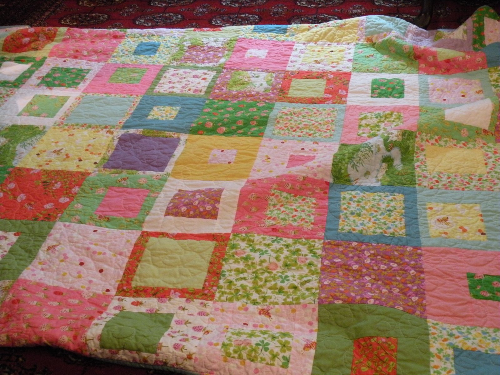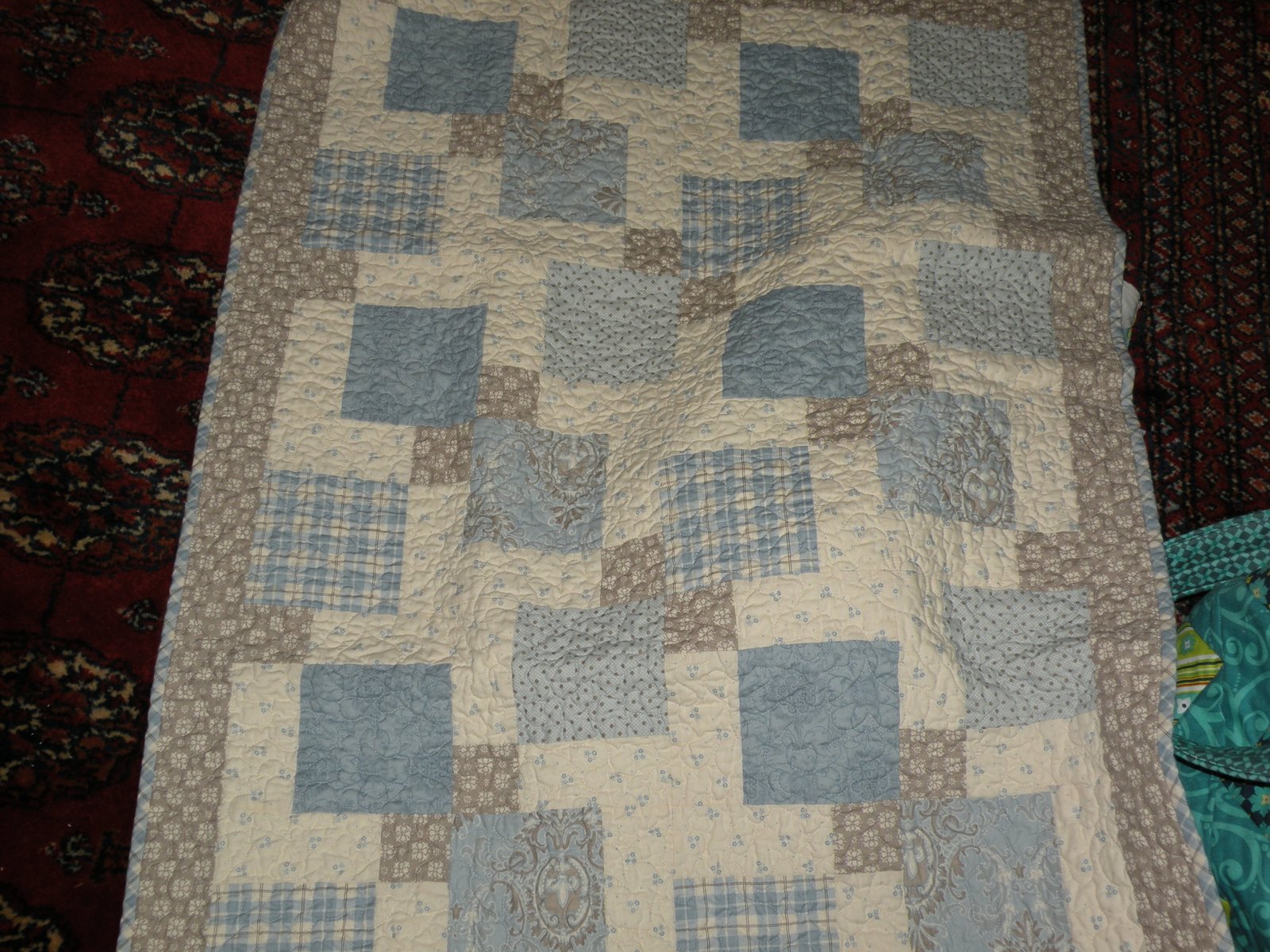 Last one from the over-achiever, Kareena...this looks big but it's actually a baby quilt. It's very soft and sweet and i'ts an easy pattern which looks like it was hard...my favorite kind of quilt!