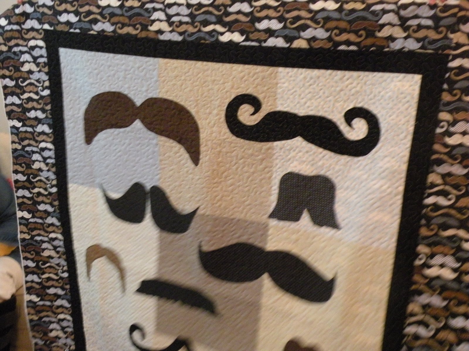 Sorry for the blur! I mustache you a question...do you love this? I have to say, it's probably not my favorite quilt (sorry K) but it did make me smile! And as usual, the applique, piecing and quilting are perfect.