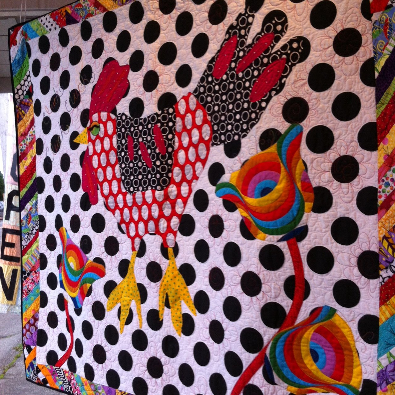 This was one of my favorite quilts, too...look at those flowers!!! And the rooster - waaaay cute. I don't know if those black dots are sewn on or if that's fabric...should have looked closer but I could barely get past the flowers - they are amazing! And that border!!!