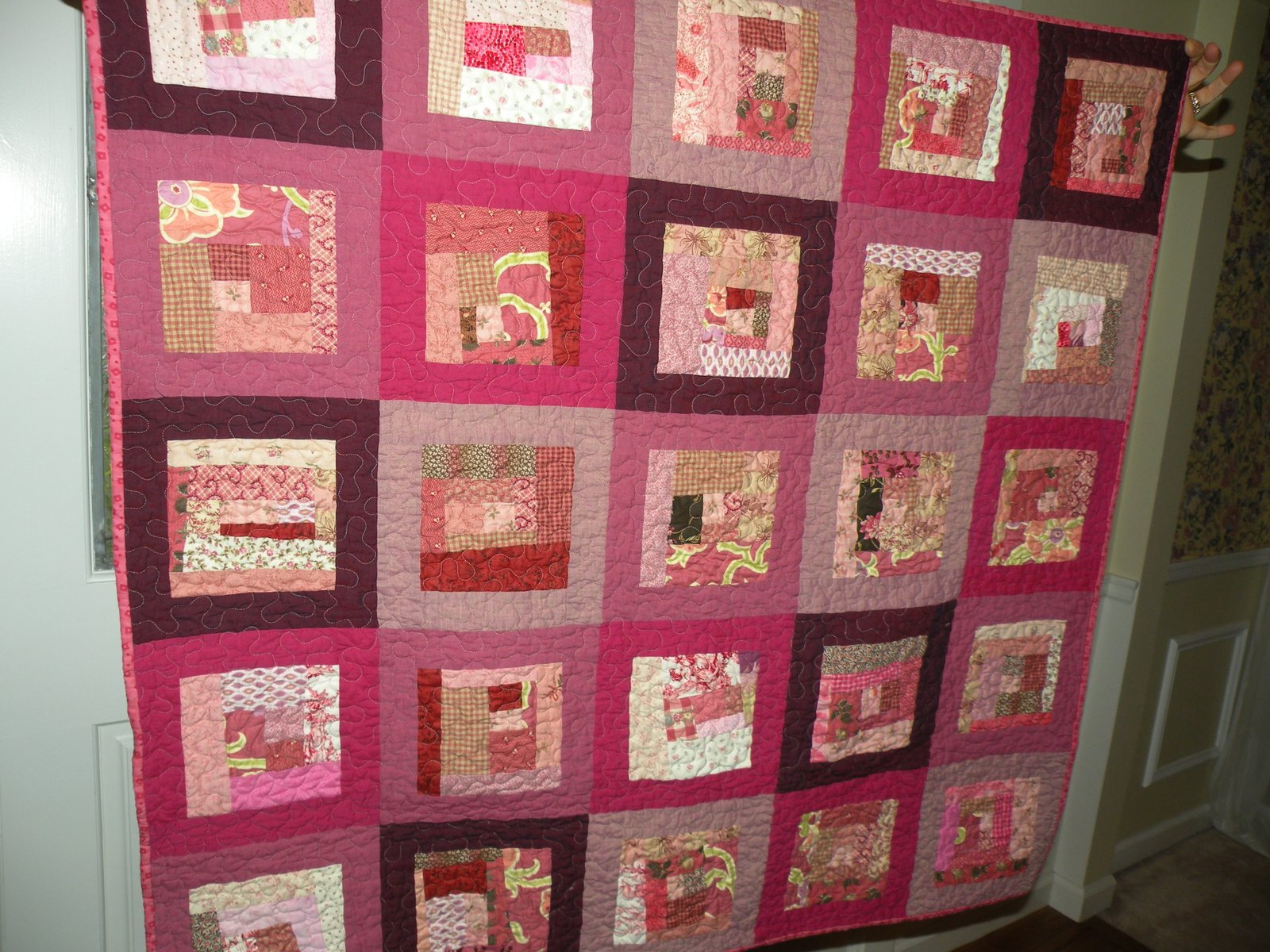 Stephanie finished this pink quilt - which I think was made from Helen's left-overs...the center blocks are all randomly pieced - which makes this so interesting.