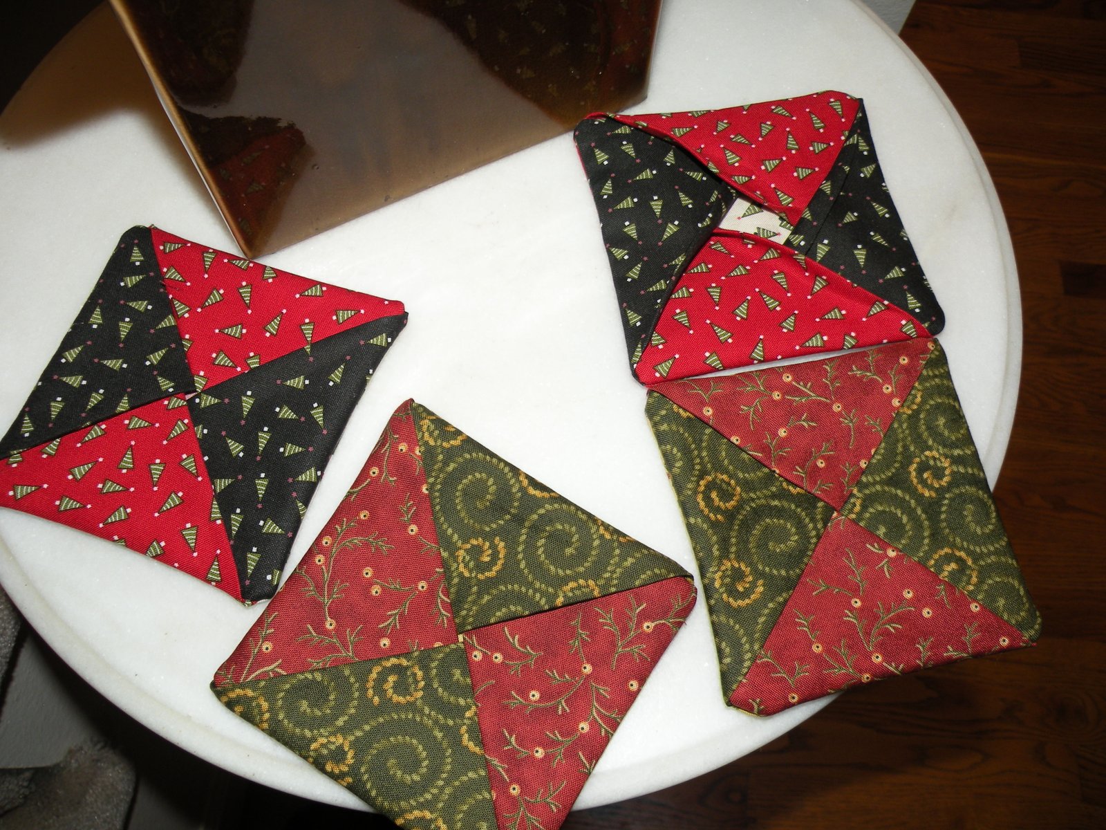IThese little coasters make great Christmas gifts - they are quick and easy to whip up so if you need a last minute gift, give these a go! I think Neva made them...or maybe Denise...can't remember, sorry! Our meeting was 3 week ago! I can't remember what happened 3 days ago...oh wait, I can, we went on the Snow Train...I'll tell you all about that just as soon as I get over being stuck on a train for 7 hours! But back to the coasters - whoever made them, great job!