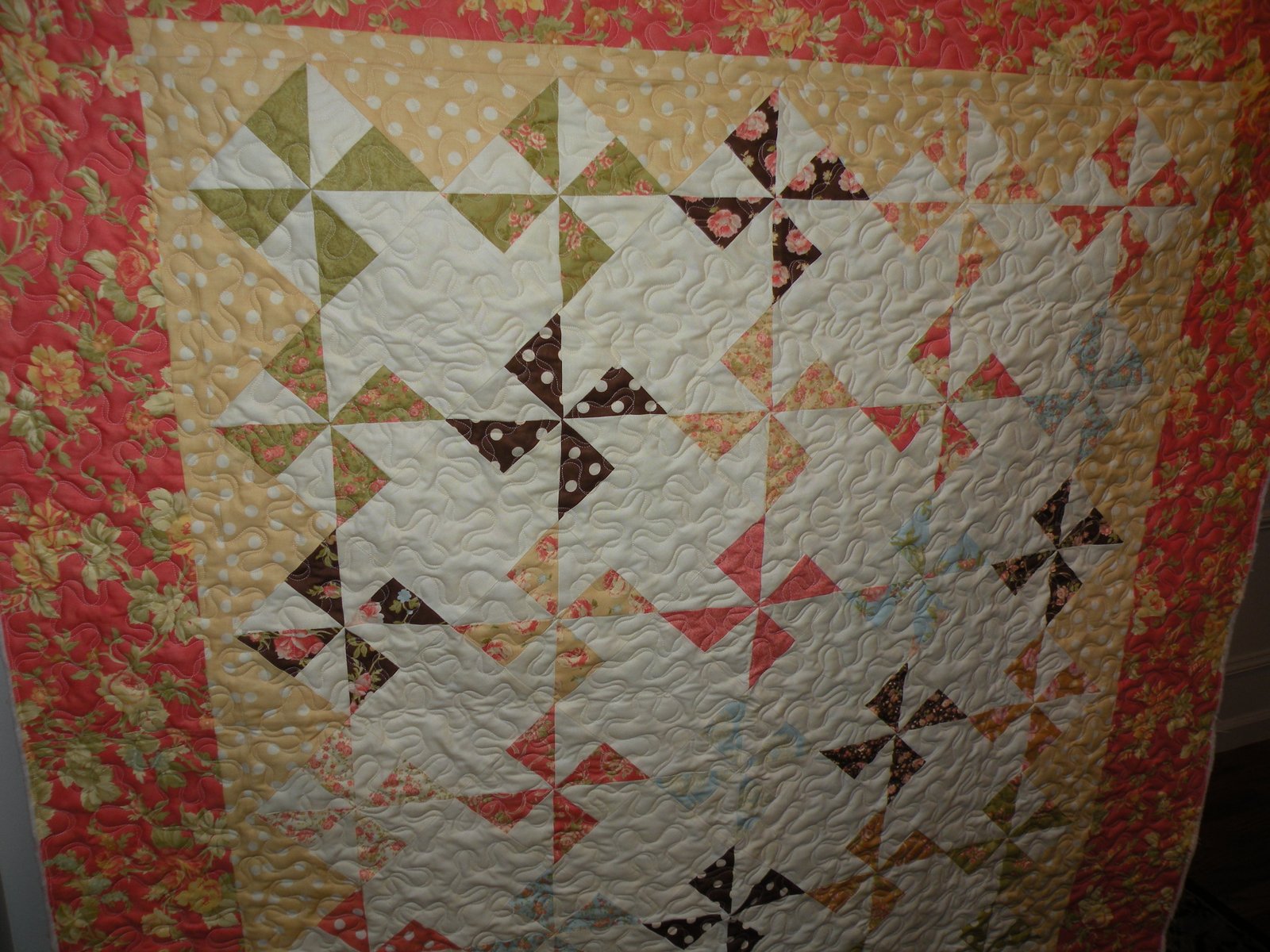 Lori just got this back from being quilted by Terry...beautiful job! The quilting is doubled...there's a name for it but dang if I can remember what it is!