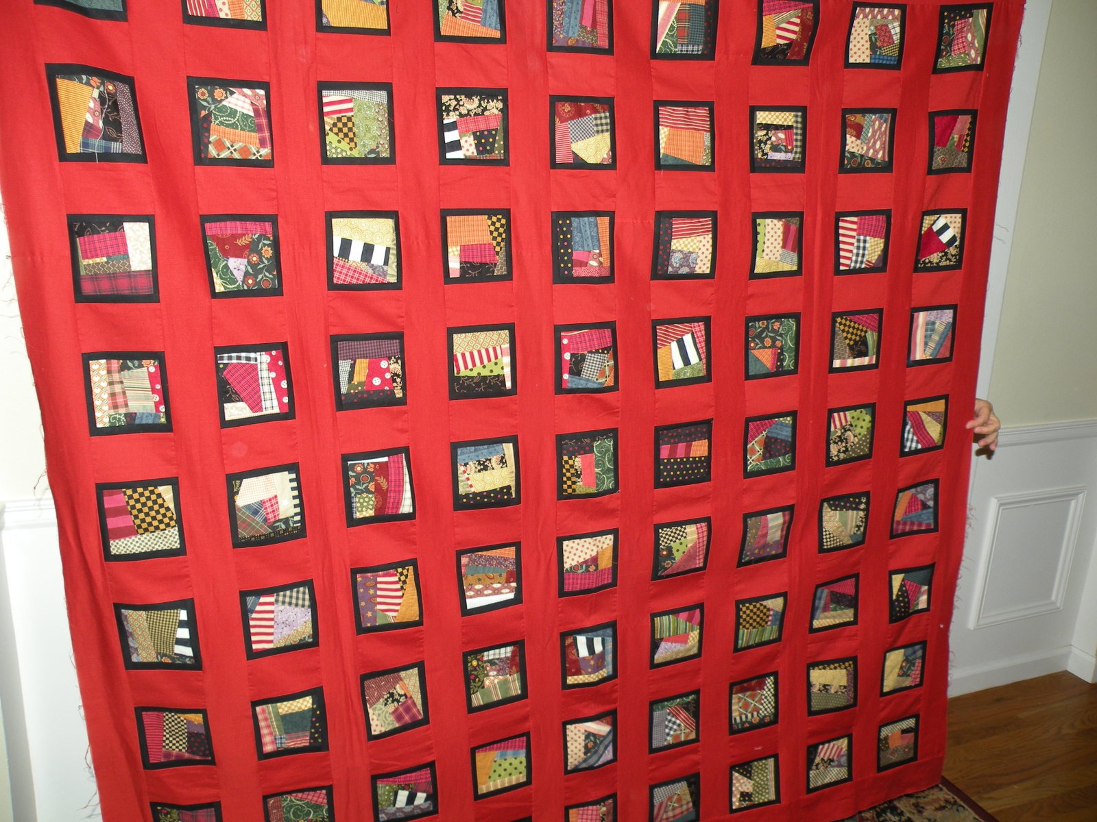 Every now and then a quilter springs from her rut and decides the time is right to finish something or in this case, Stephanie decided it was time to finish a lot of somethings! Above is one of her scrap quilts - made from tiny pieces of fabrics that I would have thrown in the trash - but just look what she did with them!