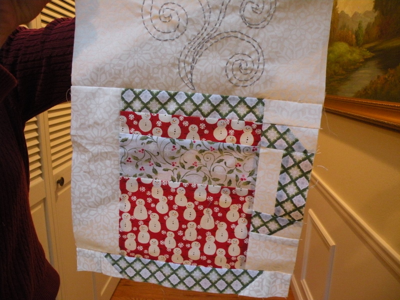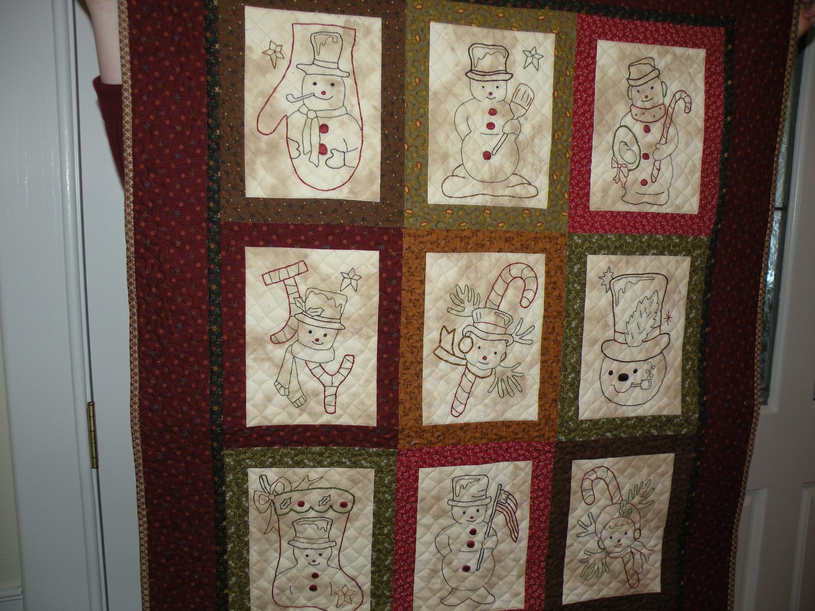Terry made this snowman quilt - hand embroidered to perfection. I love the vintage-looking snowmen...so cute!