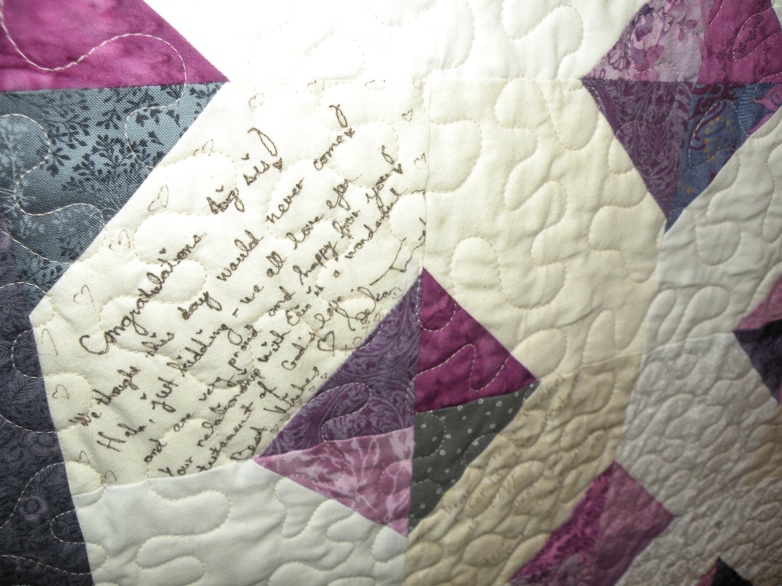 Jenny made this quilt as a wedding gift - and it has signatures all over it - check out her border - it's pretty amazing! This quilt reminds me of lattice - pie lattice! Yum!