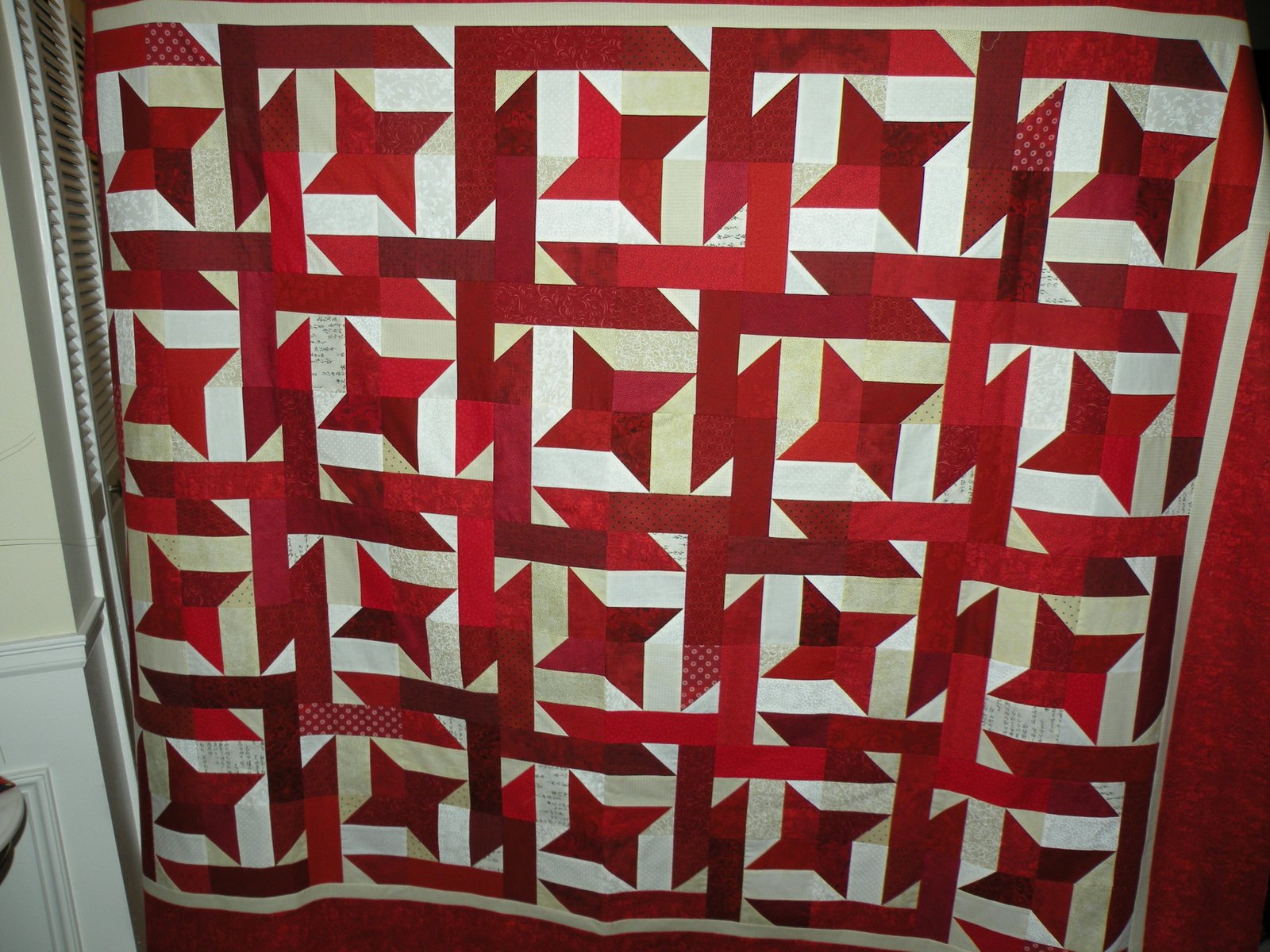 Janet made this quilt - it's SO cool! I love the sashing - looks pretty difficult but really it's just strips with a triangle sewn onto one end...simple! This would be so, so nice to find under the tree on Christmas morning...hint, hint!