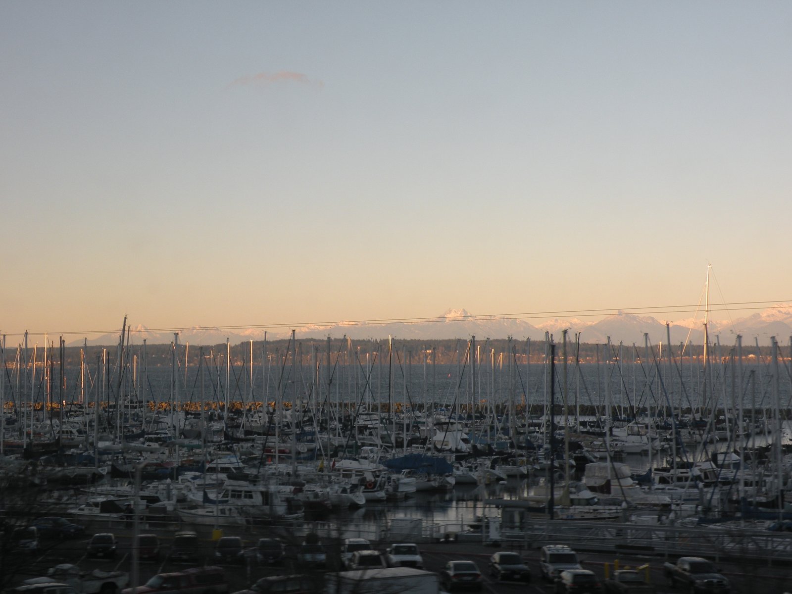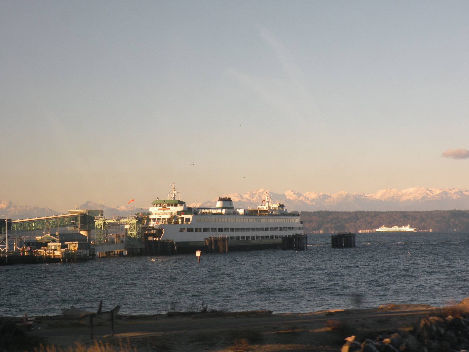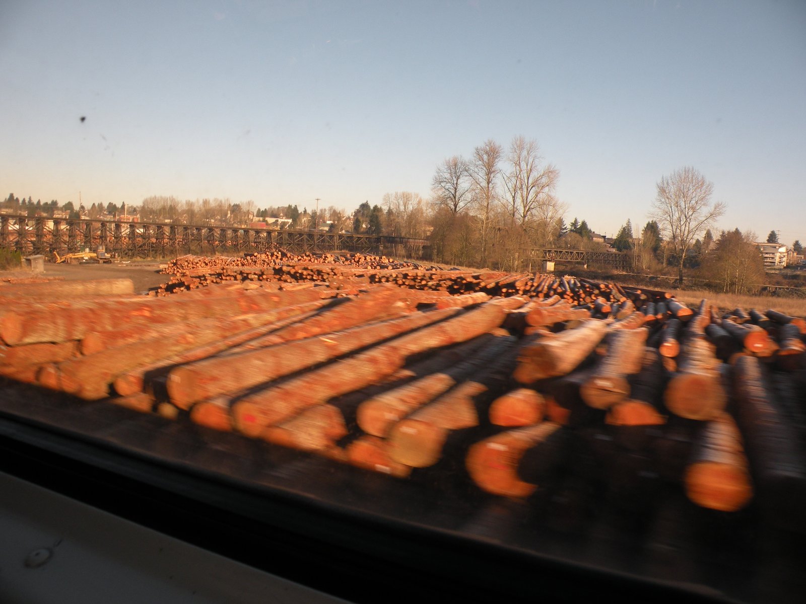 We could not have had a better day, once the sun came up because the sun came up! The train tracks run up the coast so we had beautiful views of the Sound, the snow-capped Olympic Mountains and interesting things to see on our way to the Edmonds Station to pick up more passengers. We waited a bit at the station but it wasn't too long before we were on our way - to our next stop, the Everett Station to pick up more passengers...and then we waited a bit more. But we didn't mind as we were served a frozen mini-cinnamon roll (from Costco) with water poured out of a plastic gallon container into little paper cups...I had envisioned our train trip to be more like a European train...white linens on the tables, silver tea service...