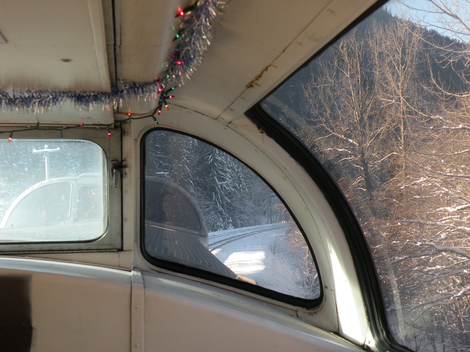 See? That was great...even if Santa was not paying attention...he was not part of the act, he was just another passenger. We had all kinds of entertainment on board, including a spoons player, violinists, Von-Trapp wannabees, a banjo and a magician...it was the only thing about our journey that was non-stop and it kept us amused while we waited for the freight trains to fly by. There were also two, not one, but two National Parks Guides on board, in case we wanted to know anything about what we were seeing...and the mister couldn't wait to ask a few questions...like how long is the tunnel? Oh glad you asked...it's the longest tunnel in the country, 6.2 miles and after the train goes through the doors are closed on one end so the exhaust fumes can be blown out so the next train's passengers don't die from breathing them. Good to know!