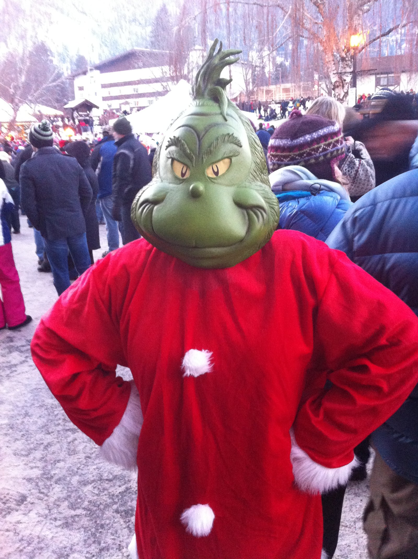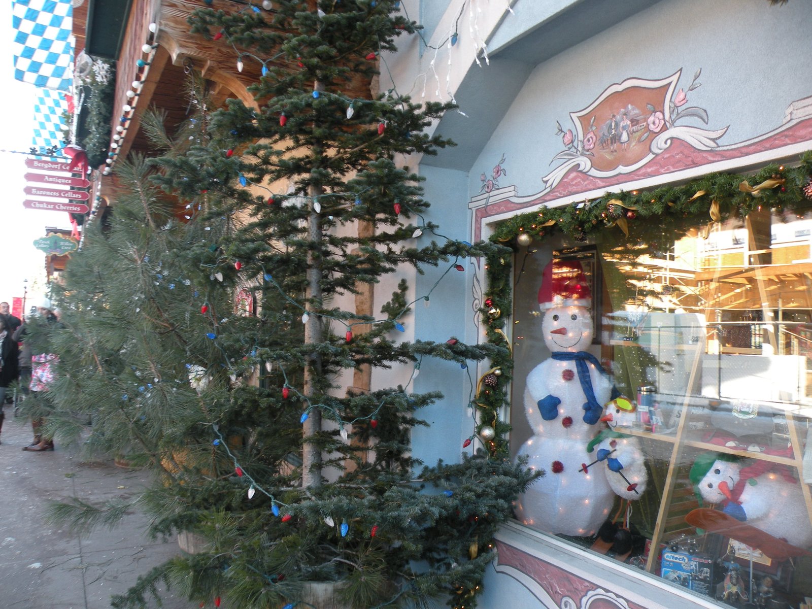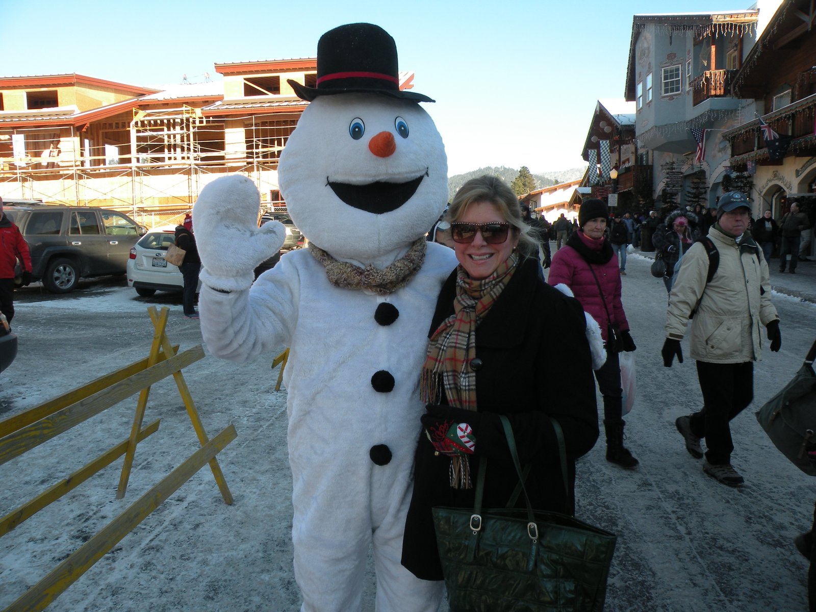 The streets of Leavenworth were jammed with people just like us - looking for a place to keep warm! The restaurants had hour and a half wait lists and the shops were so crowded we couldn't get inside! And Frosty, well, he and I were stuck together like a tongue on cold metal! The mister had to pull us apart because Frosty was not Frosty at all but rather WARM!