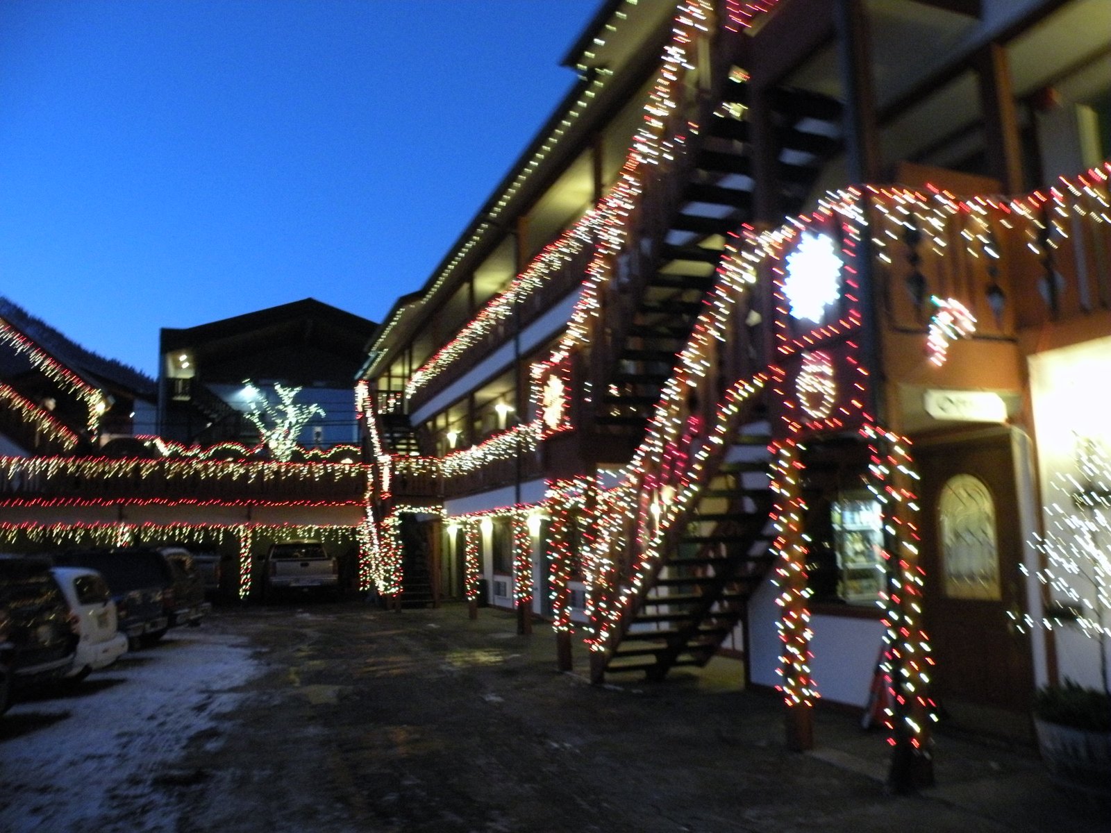 The entire town lit up and the crowd cheered!! We heaved our frozen legs along the ice-coated streets toward the busses...the first half of our trip now completed!