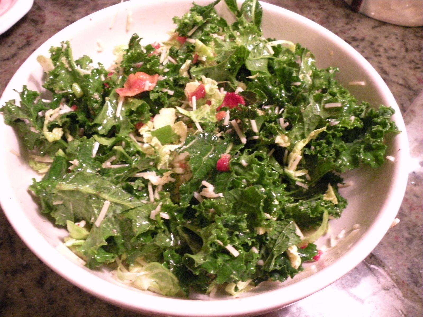 Santa could benefit from this Brussel-Kale Salad - not that there's anything wrong with the fat man in the red suit, but maybe I'll make up a special batch and leave it out for him on Christmas Eve - it's so good it might even get me an extra gift!