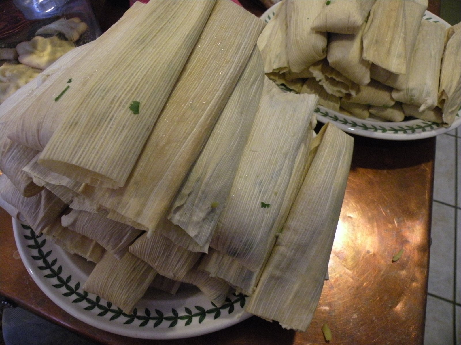 That's half of the tamales we made in the pot! We ate some, gave some to mom's neighbor, my sister took some home and we froze the rest; after cooking they freeze really well and can be reheated easily in the microwave or they can be re-steamed.