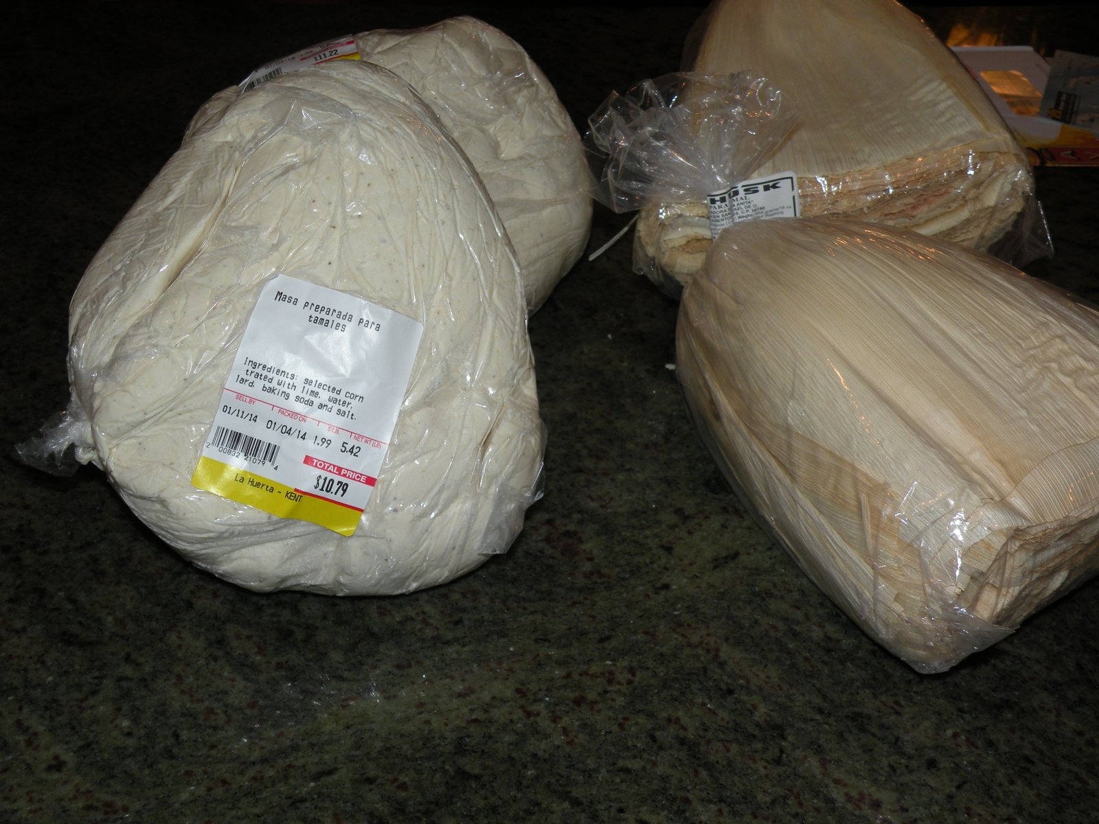 1 package corn husks (Available at most large grocery stores, Safeway carries them, and Hispanic markets. The package I purchased had 100 husks, we used about 65.)