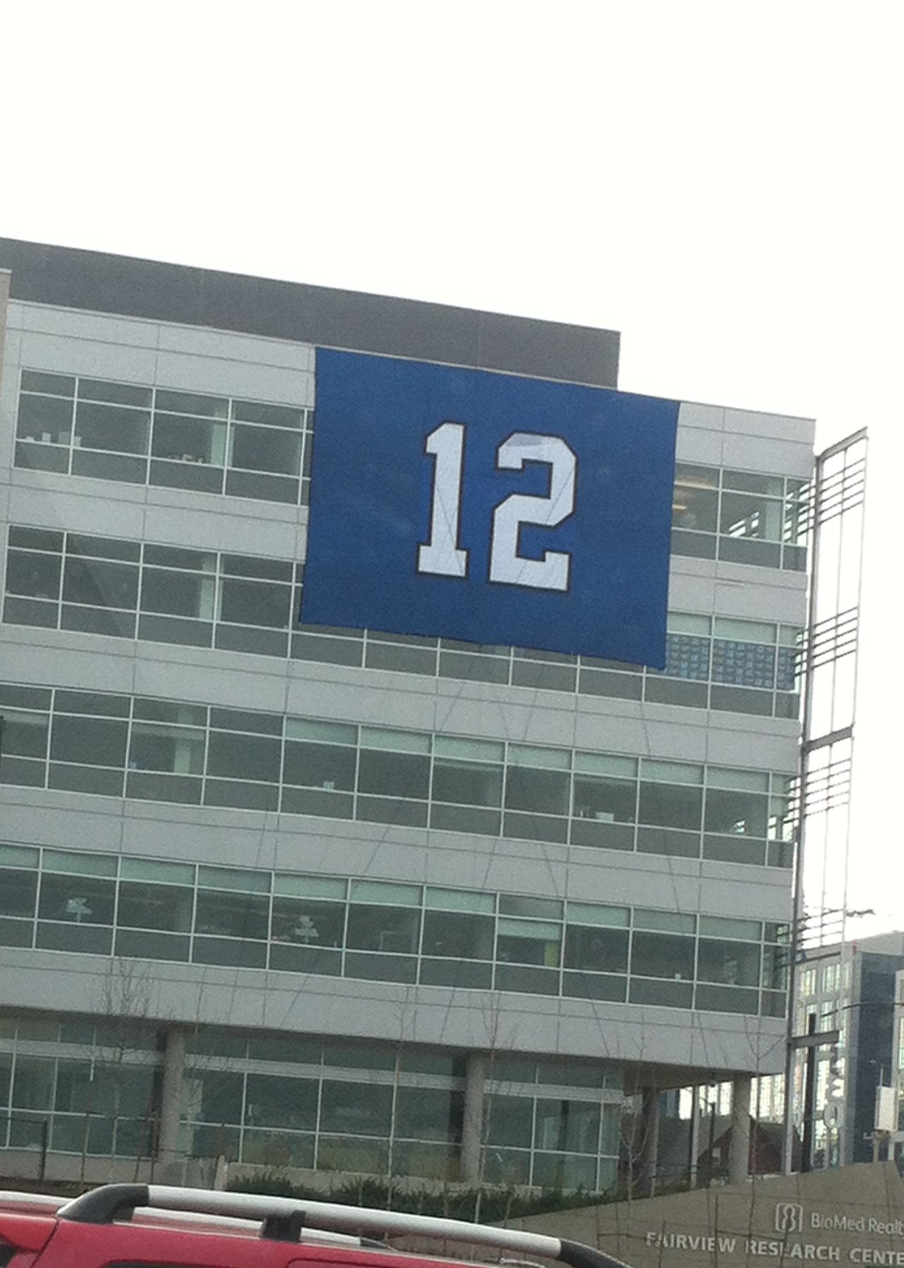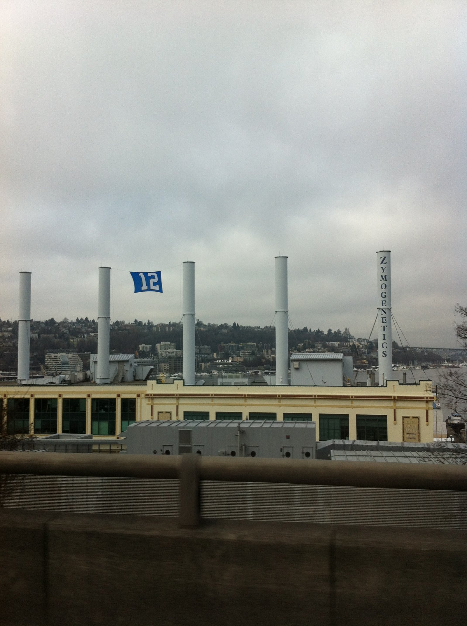 Before I head into the kitchen to prepare the feast, I'll leave you with a few picks from our travels yesterday around the city...The 12th Man flag flies high and proud above the Space Needle and we even saw it flying high above Lake Washington - with blue skies (except for a few pesky clouds)...Blue skies in January, surely that must be some kind of omen! After I had taken about a dozen pictures of the 12th Man flag, I stopped because the flag was everywhere! Every building, every car, every restaurant was flying the flag...GO HAWKS!!