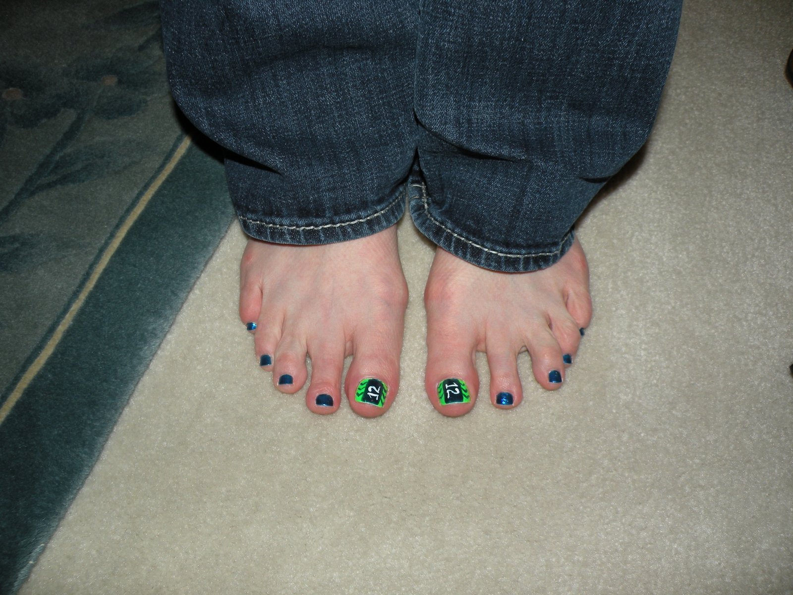 This is how we started our meeting - with a peek at Kareena's freshly painted "12th Man" toes...it was nice to see our Aussie friend has been converted to real football! For those of you who live under a rock, the 12th Man is the name for Seahawks Fans...only the best in all of NFL-dom!
