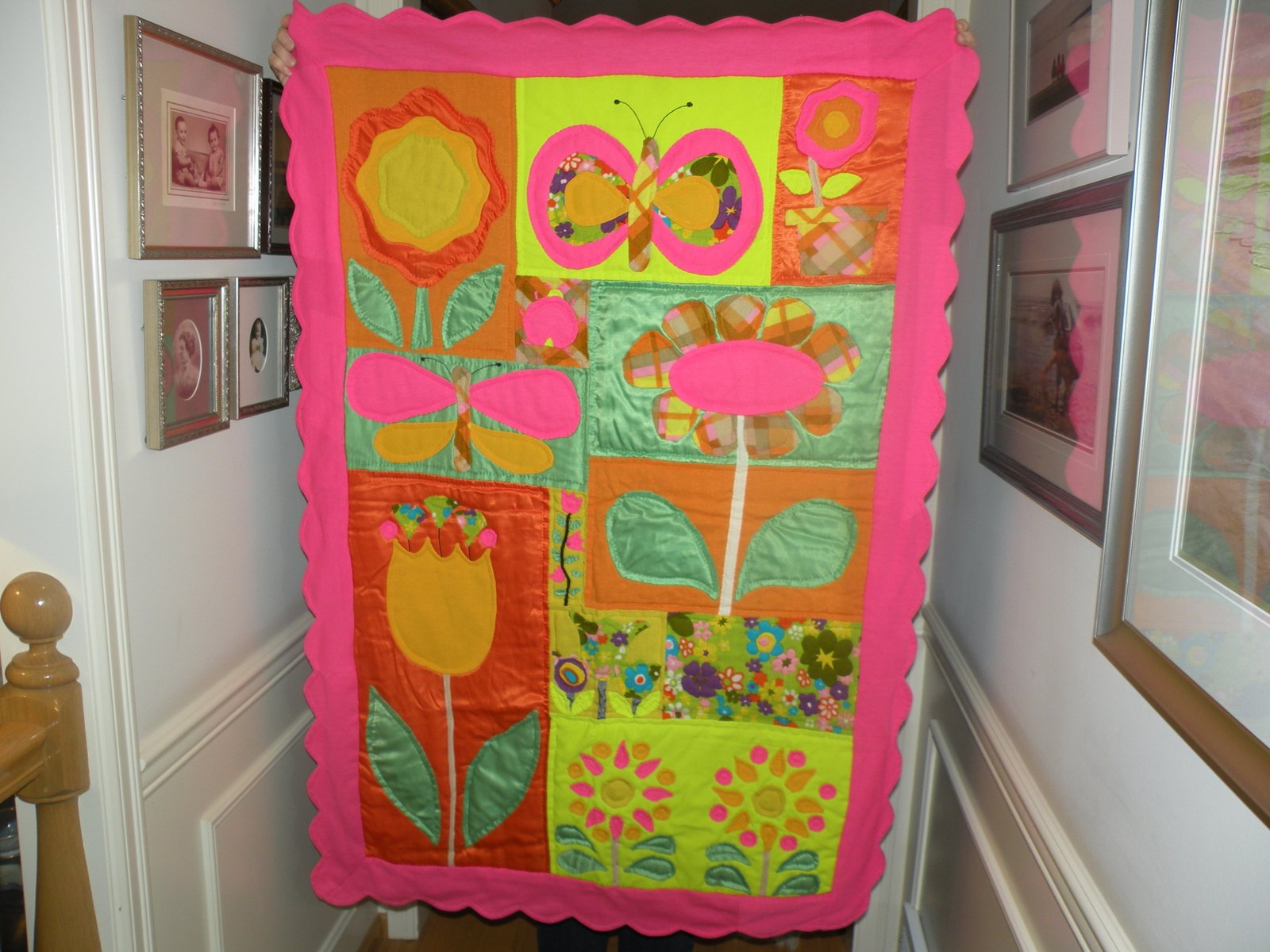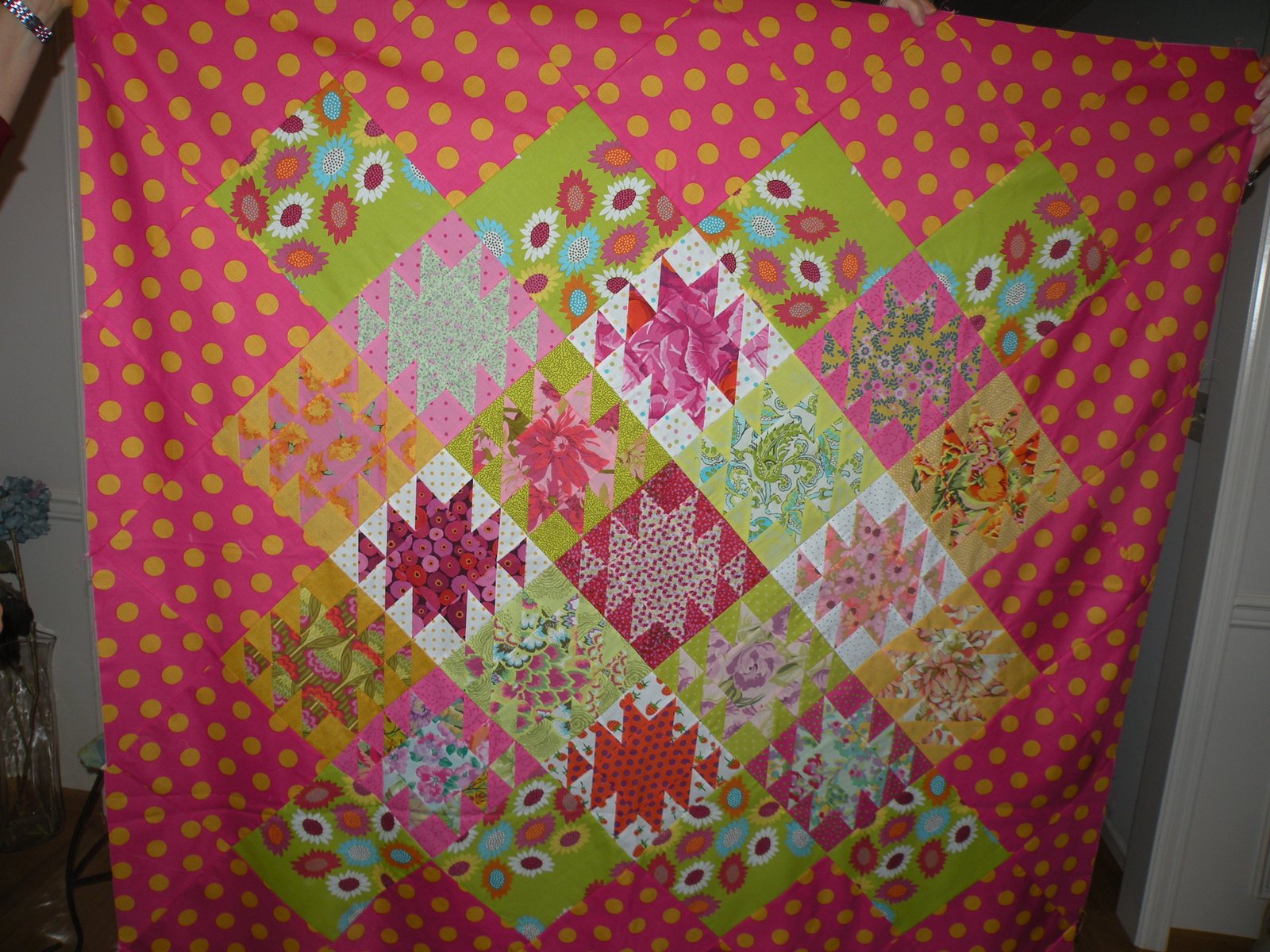 Jenny brought in this quilt - I wish you could feel it, in all of it's polyester/wool/cotton glory! It's fabulous!! Jenny rescued it from a consignment store - it's got a real vintage vibe to it along with it looking dang happy!