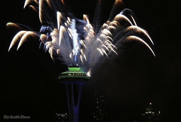The Seattle Seahawks are the Super Bowl CHAMPS! Best game ever! Well, if you're a Seahawks fan it was...and the entire city celebrated long into the night - including fireworks from the top of the Space Needle! (Photo from the Seattle Times.)