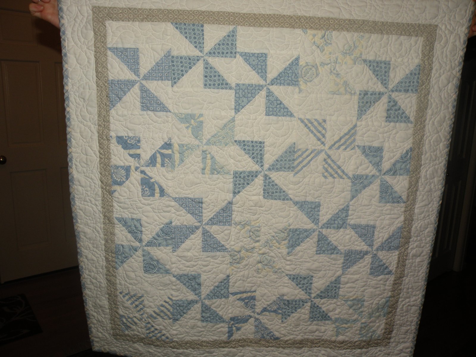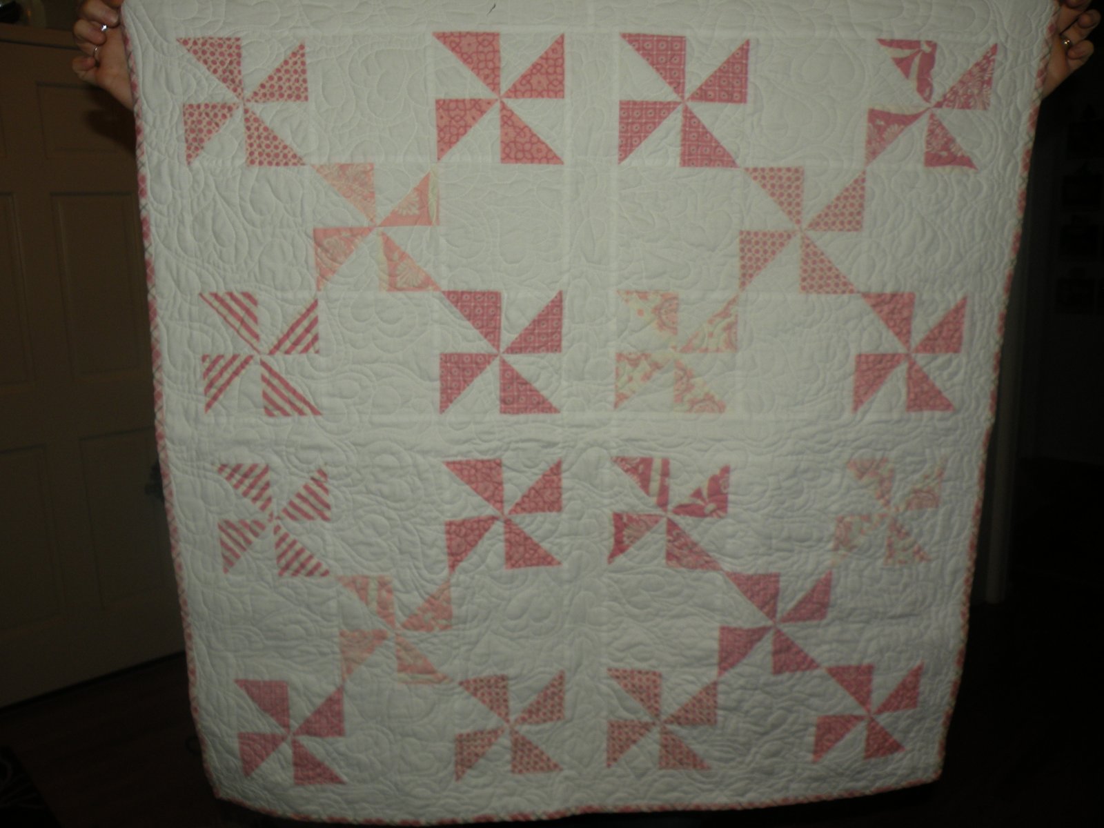 These quilts are small, maybe 40-inches square, or even less, but they're perfect for a newborn or as a wall-hanging in the nursery. Who doesn't love pinwheels?!