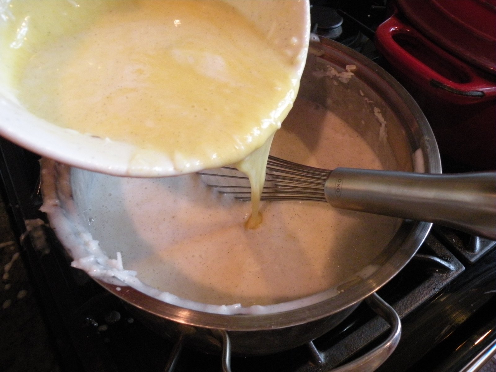 Finding the recipe for the Dahlia Lounge's Coconut Cream Pie was not hard, I just opened Tom Douglas' The Dahlia Bakery Cookbook, and followed along. (I'm a huge Tom Douglas fan - I think he has about 10 restaurants in Seattle, they are all my favs, and if you haven't treated yourself to his food, rectify that immediately!) IF you decide to make this pie - and I really hope you do - then you need to know you have to start early in the day if you want to serve it the same night - or start the day before - you don't want to rush this, it's worth taking your time.