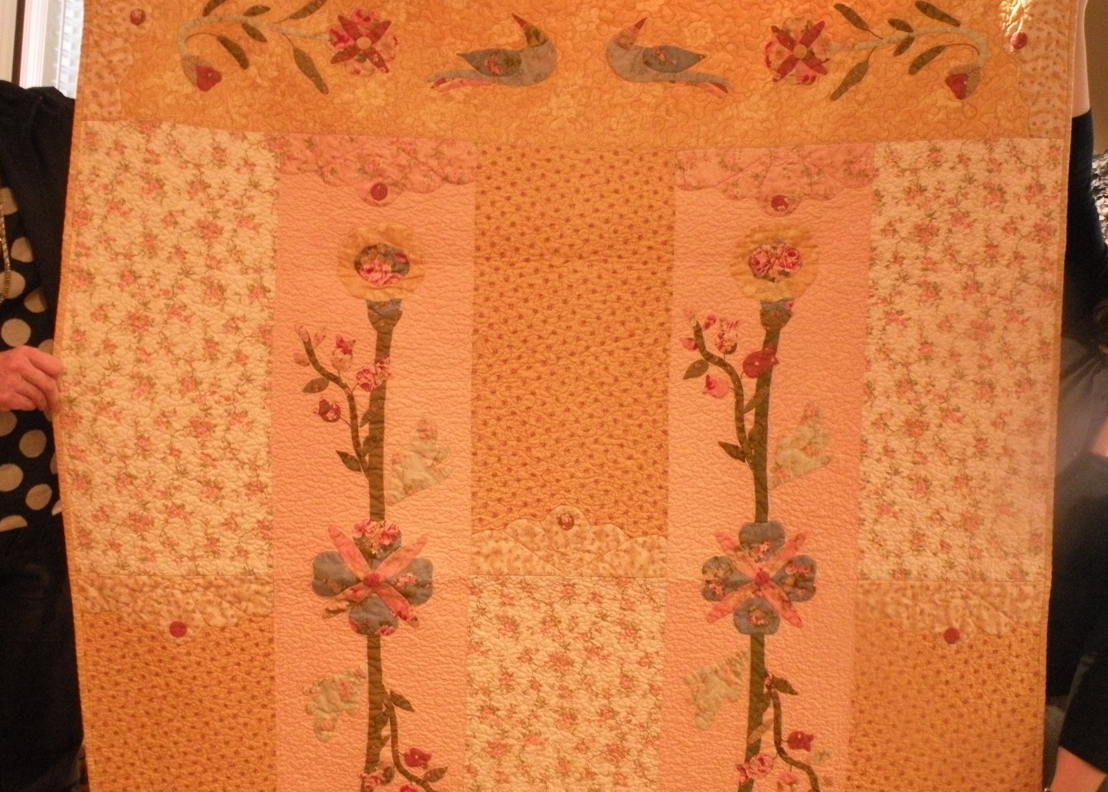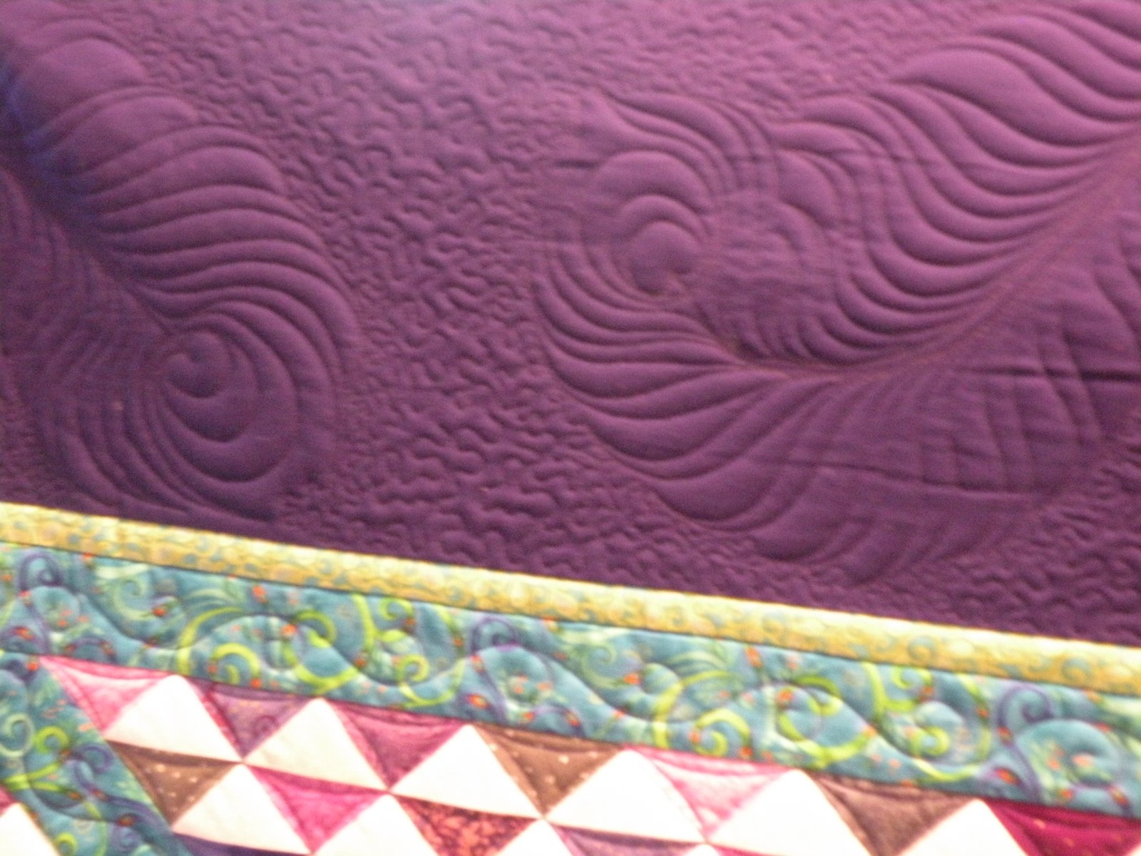 Remember this quilt? Jenny brought it last month to show. She made it for a wedding gift and now it's all quilted and bound and you needed to see the feather quilting - truly beautiful! Lucky bride and groom!