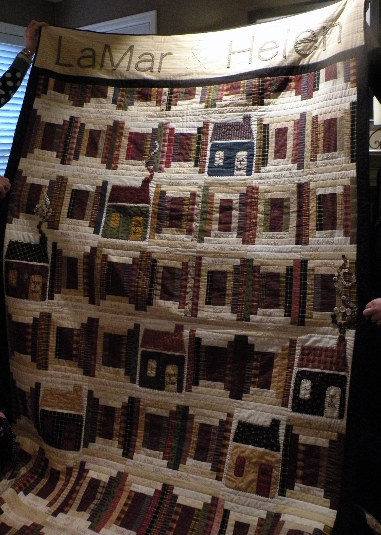 Lori's mom recently passed away so the quilt was returned to Lori and now it will hang in her home. Such a loving family tribute!