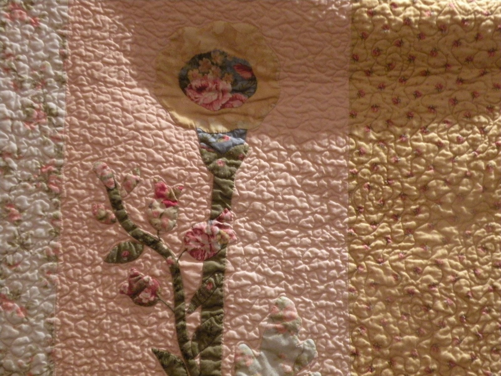 Lori made this quilt for her mom - it's all hand-appliqued and it's so soft and sweet. So glad I remembered I had a FLASH on my camera so I could get a decent picture! I do try folks, honest!