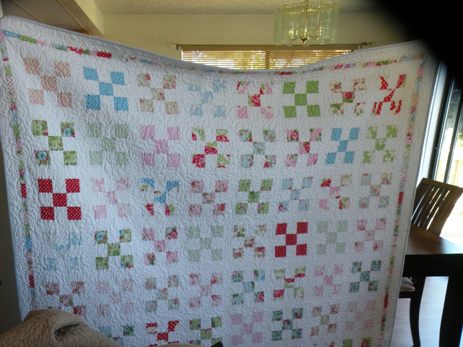 This is another quilt by Terry - she was very, very busy last month! Soft and pretty and I love how some of the blocks seem to fade in and out because of the lighter colored fabrics.