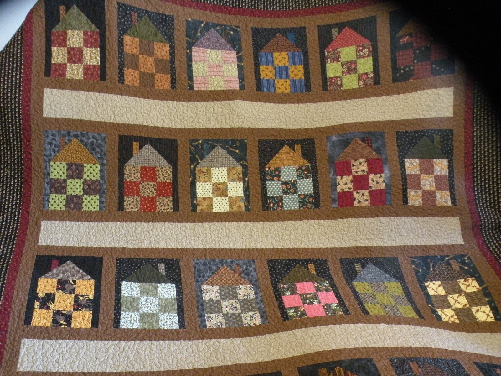 These are Terry's quilts, too! Another circle quilt - hello old friend! And her house quilt, which I love because Terry used black fabrics around the houses, so the houses are seen "at night." Terry said years ago she would walk her neighborhood at night and some houses had lights on and some were dark and this quilt reminds her of that. That's some kind of wonderful!