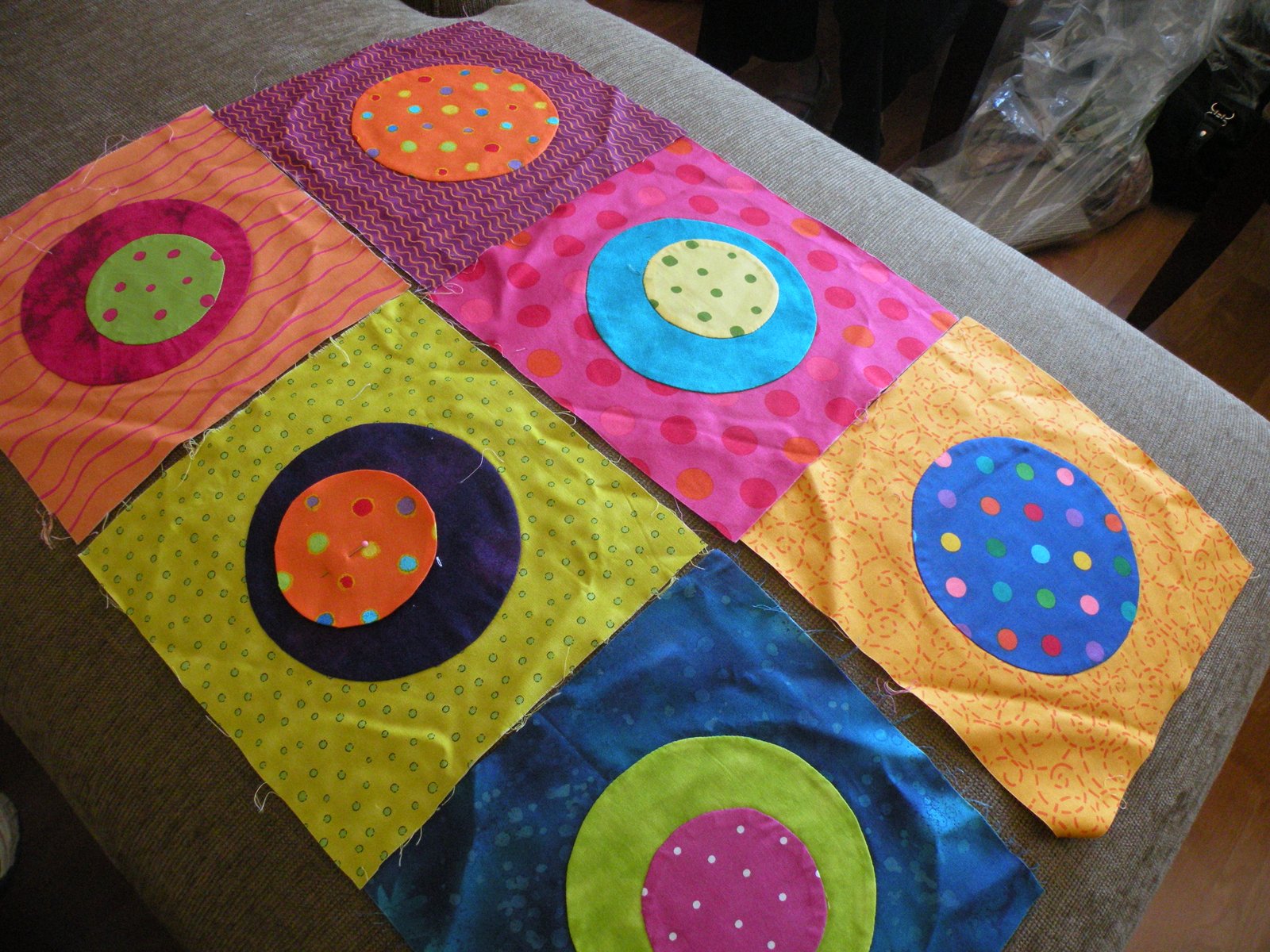 Helen cleaned out a few spots in her sewing room and brought these two little quilt tops and circle blocks to see if anyone wanted them...we all did so we drew numbers - Denise and Neva were the lucky ones!
