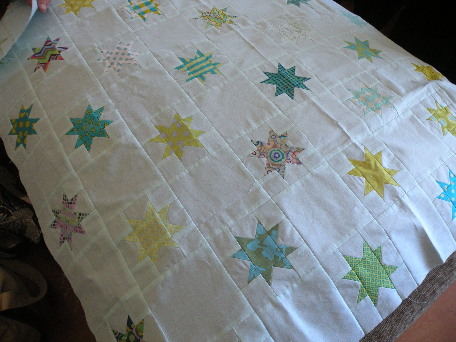 This sweet quilt by Ardith hasn't been bound yet, it's fresh from the quilter. Terry quilted this and she did a beautiful job, take a close look and you'll be able to see her work.