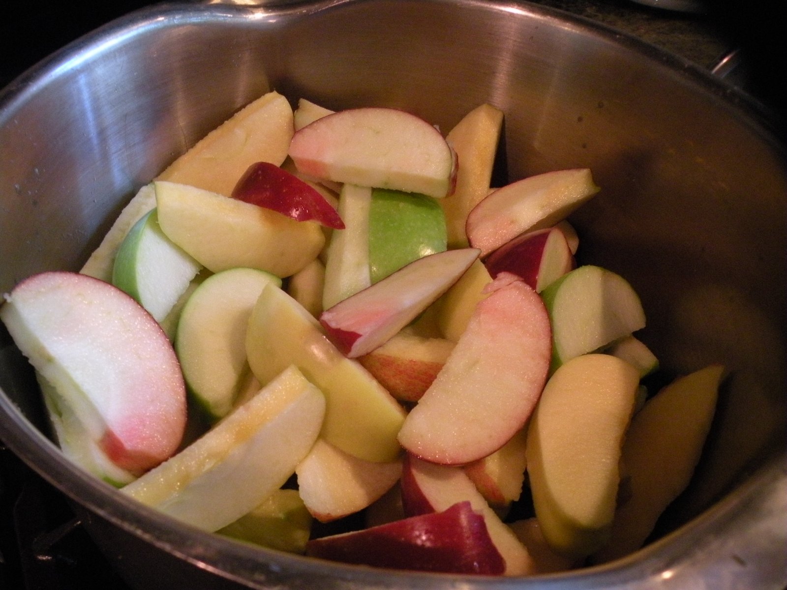 6 lbs. apples (such as 4 pounds McIntosh and 2 pounds red-skinned apples with white flesh, like Cortland or Empire or Fuji)