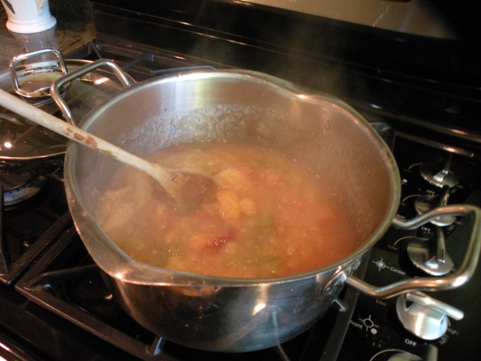Granny Smith, Fuji, Red and Golden Delicious apples were my picks, but you can use any apples you like. After coring the apples with an apple corer, the apples are put into a large pot and lemon juice, water and sugar are added. It cooks for about 40 minutes - long enough for your entire house to smell like a potpourri factory.