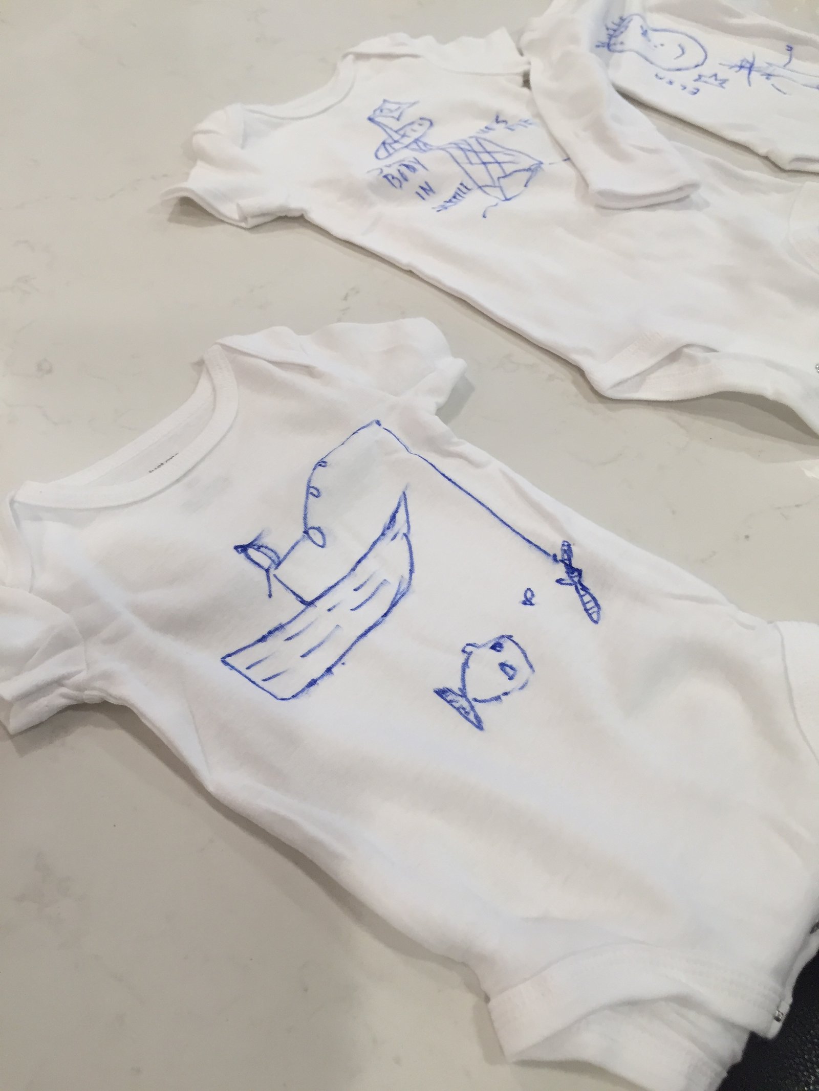 Everyone got to decorate a onesie for the new babe...most everyone thought Gabby was going to have a boy! Only three people knew the actually gender...the mom, the dad and yours truly. Of course, I did my best to mislead and confuse - which is my specialty.