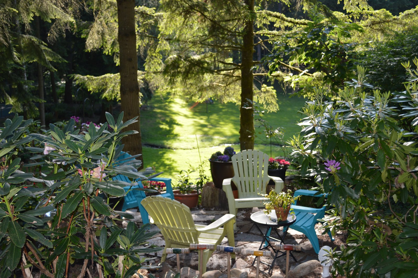 This is where I'll be today...in my view spot. Last year at the end of summer I dug out a little more room, put in a few more pavers and made my little spot a bit larger. I can now fit 4 chairs in my view spot - enough for visitors. Feel free to drop by, after sitting for a spell we can walk into the garage and I can show you the scene of the crime.