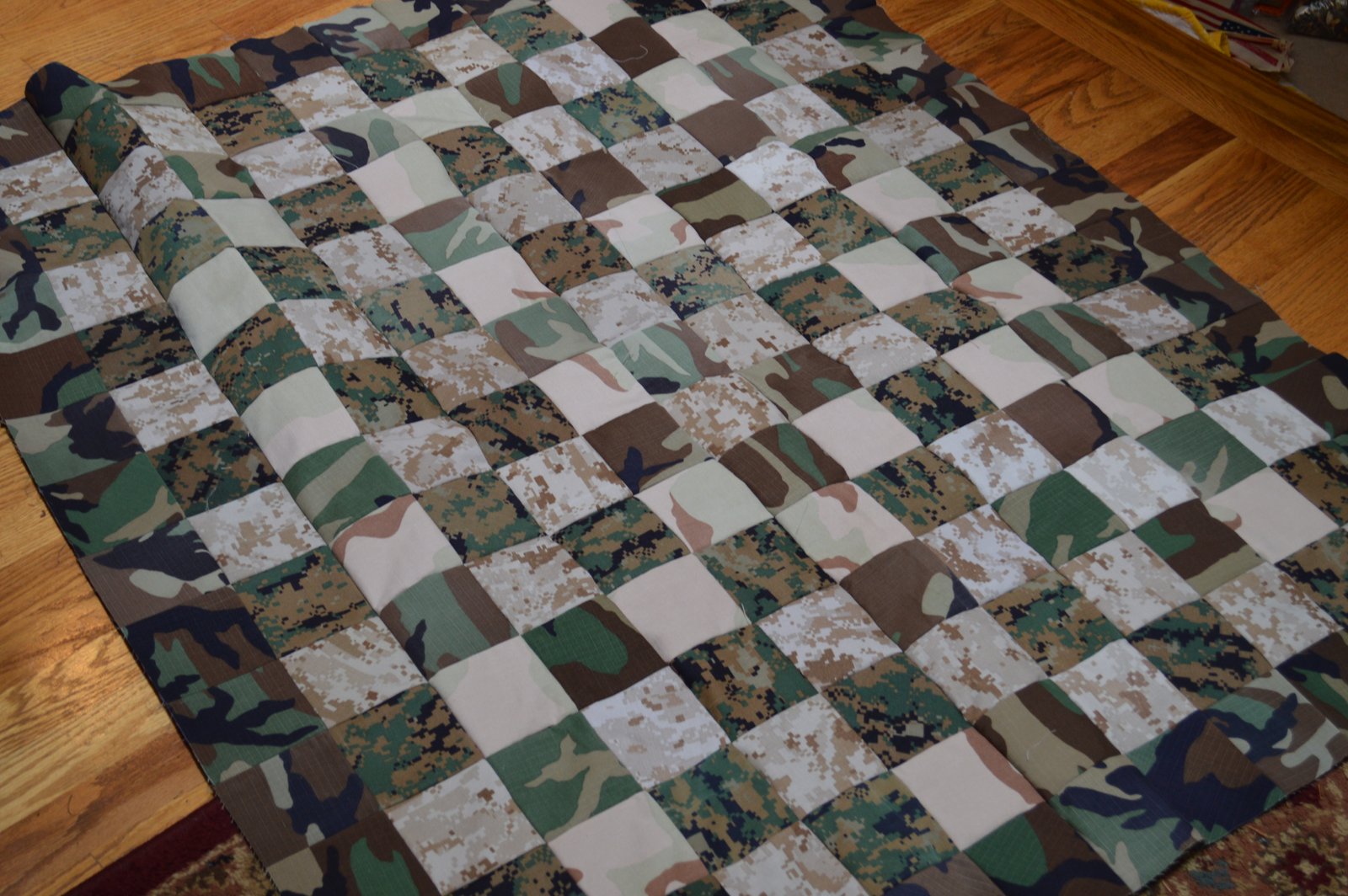 This quilt has a very sad story - Stephanie made this quilt for the family of a Marine who was killed in Afghanistan - it's made from his fatigues. I'm sure they will treasure it. Semper Fi.