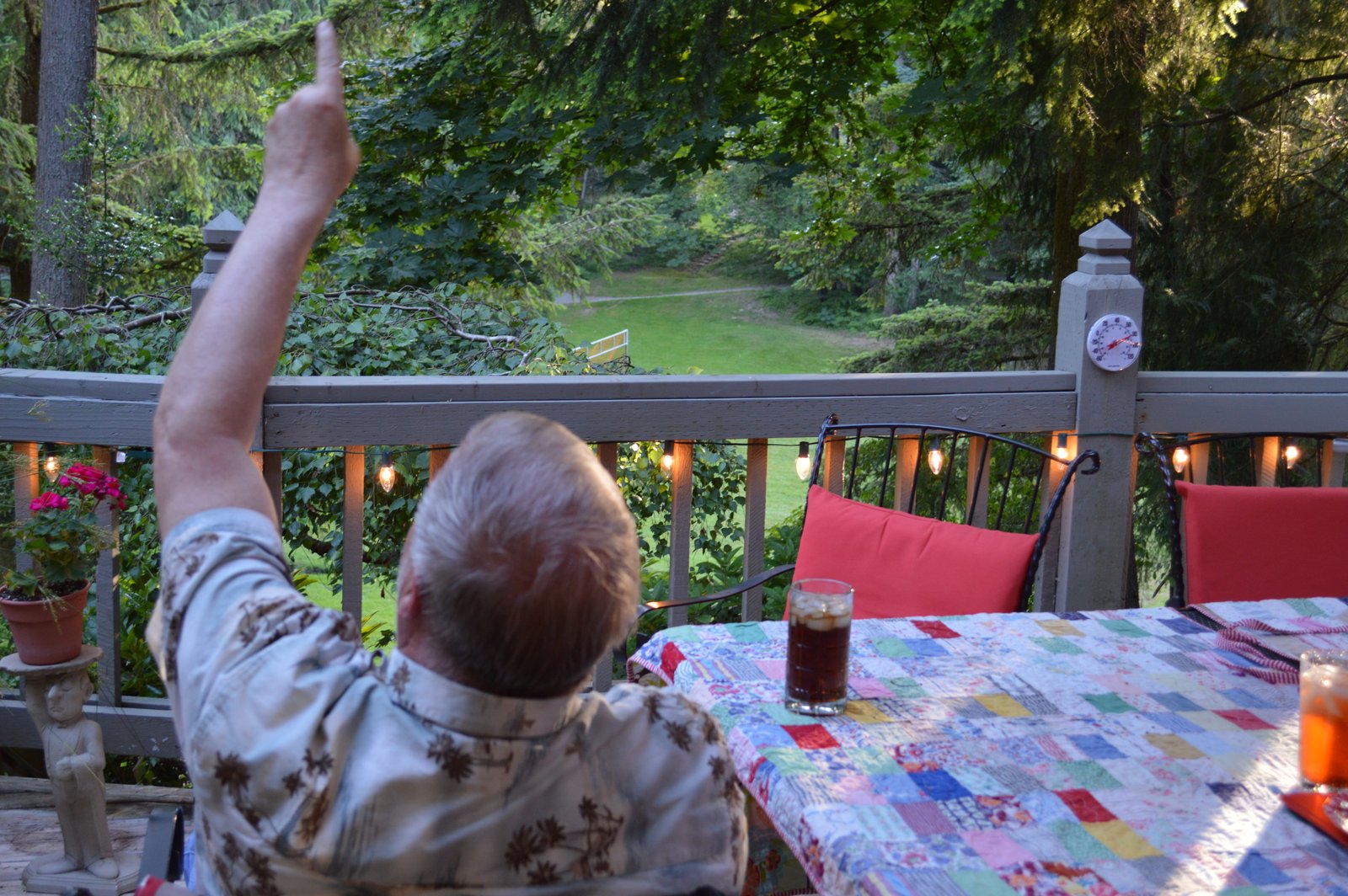 The mister sets in his chair on the deck in the evening and when a plane flies overhead or maybe just a finch, or if he sees an unusual cloud formation, he yells for me to come and see it, "Hurry up you're going to miss it!" I drop whatever it is I'm doing, rush outside to see him pointing in one direction or another, and usually hear him snarl, "You missed it." He has way more fun setting than anyone I know. He's quite taken with this new game - due to the beautiful weather we've been having, the mister has been outside setting every night for weeks...the monsoons can't return quick enough for me!