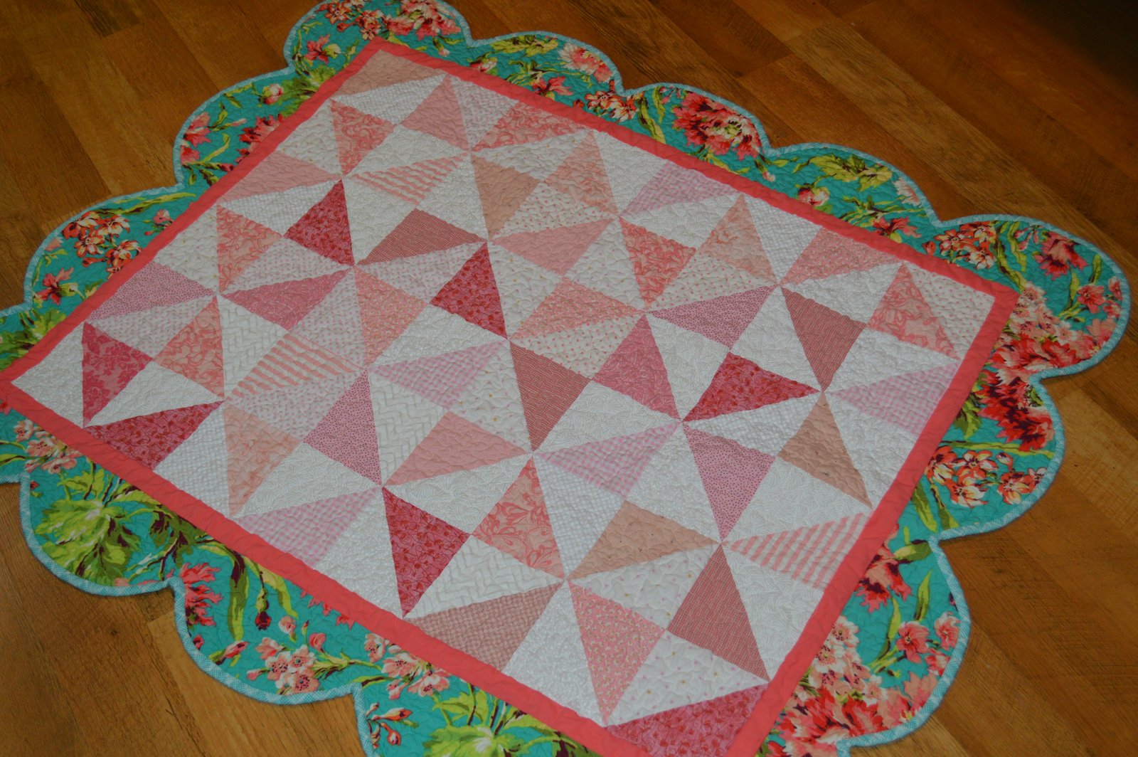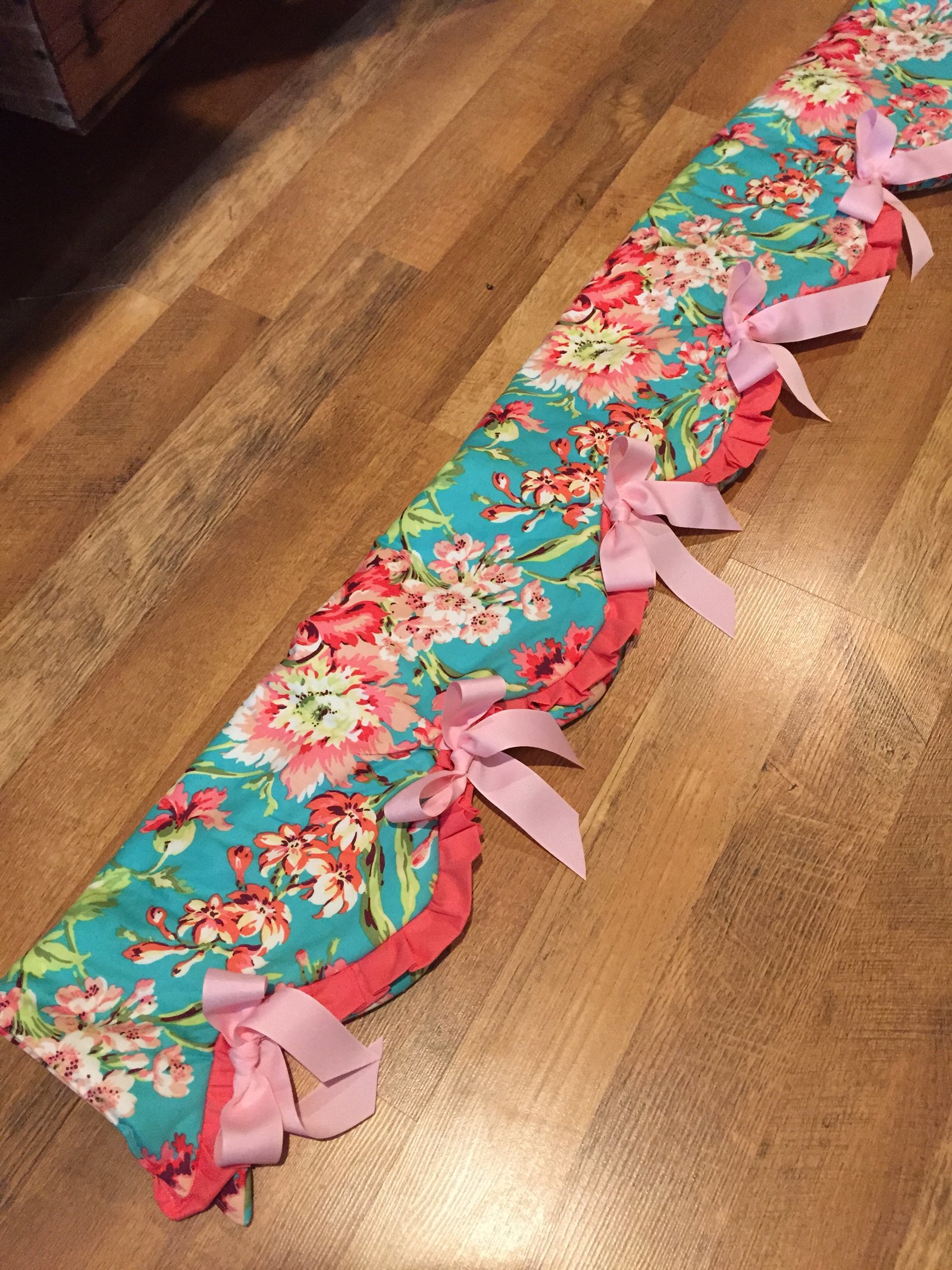 This is the crib quilt and the bumper pad for Rylee's crib. As you may or may not know, having bumper pads is now considered dangerous!! So Rylee's bumper pad was made to go on top of the crib railing...stupid if you ask me...I guess it's more important to keep the baby from biting the crib rail than banging her head on the slats! It's a miracle that any kid grows up today!