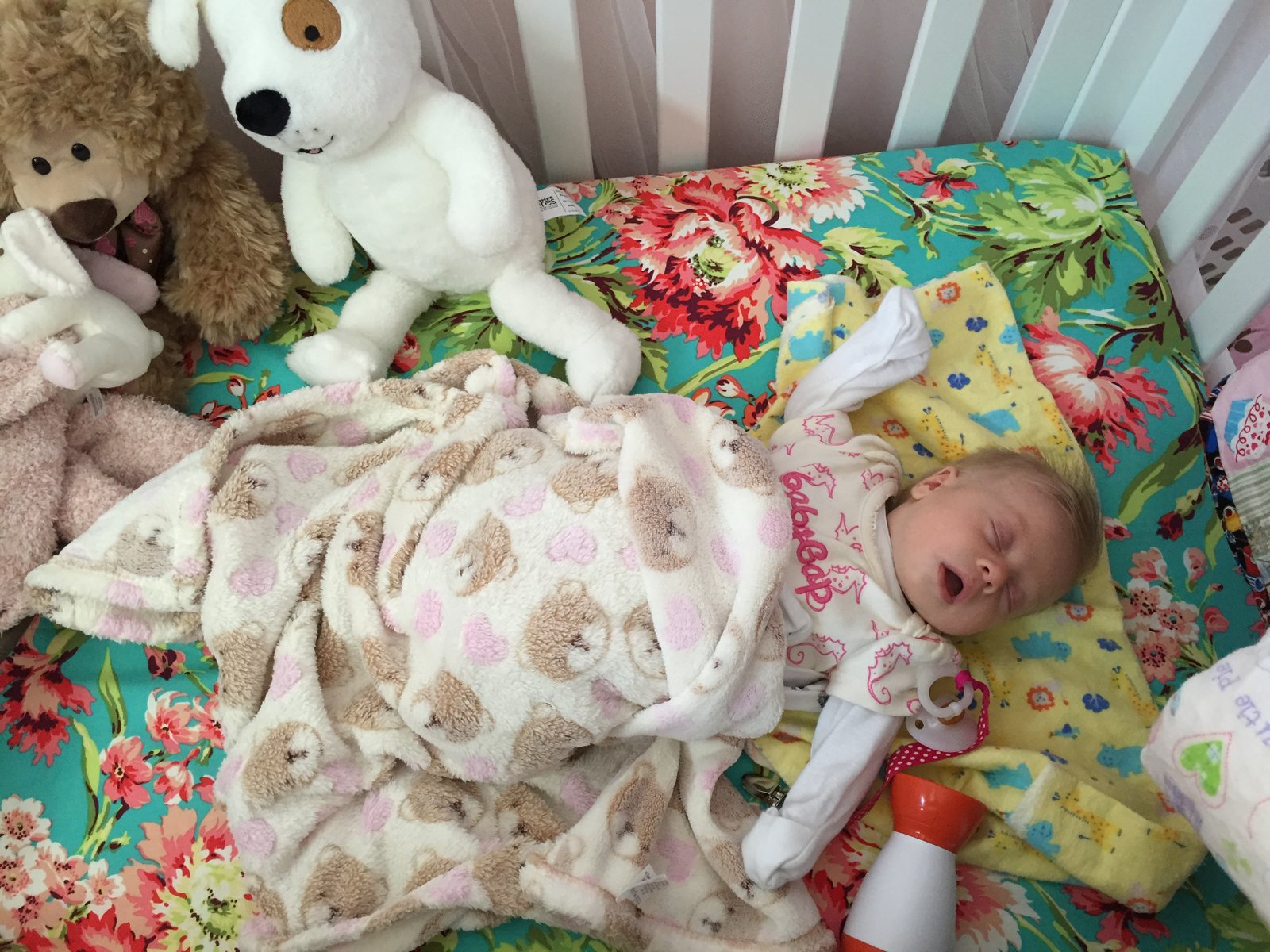 One last shot of the little love in her bed...which is probably a first for her - usually she is sleeping on top of her mom or dad or in their bed - like most babies these days, do they really even need a crib?!?