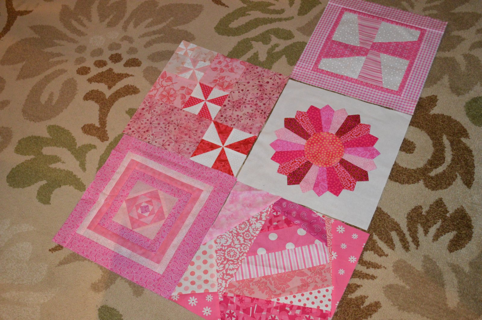 This month Pink was the color for our blocks. This is usually what happens with these projects - we all start the year off bringing our blocks on time and after a few months we get behind and by the end of the year we all owe blocks!
