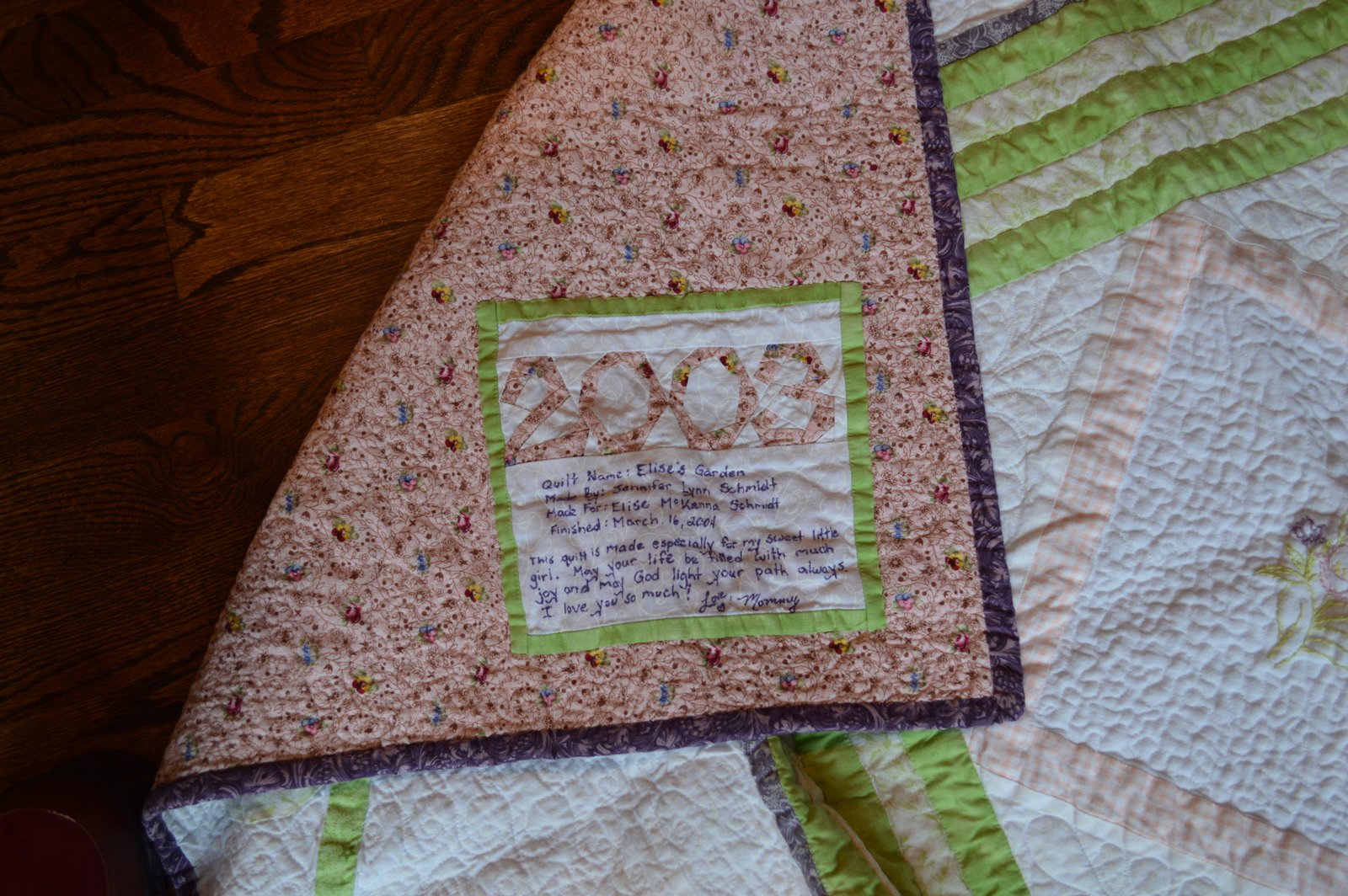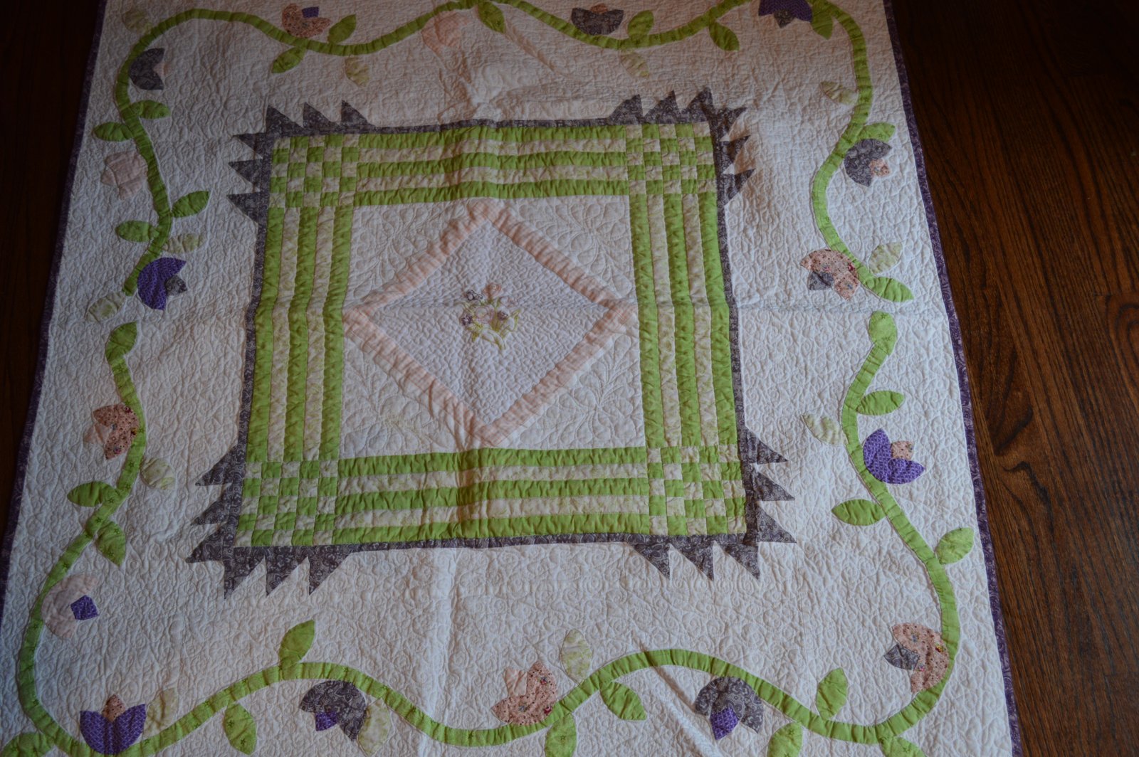 And here's the front - beautiful, no? The stippling on this quilt is really wonderful - very small and intricate but the quilt itself is very soft and not stiff. Jenny made this quilt for her daughter Elise in 2004...I think Elise is now 11? Love it!