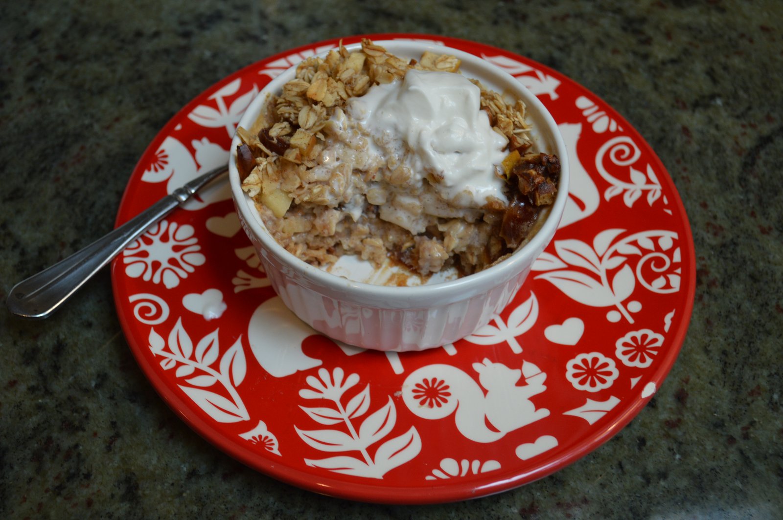 Okay, let's talk pudding. Like all puddings, this breakfast pudding is creamy and rich. But that's where the similarities end because this pudding also has a nice crunch from roasted pecans and the chewiness of dried dates and fresh apple bits - and of course, there are the oats. Please don't make the mistake of thinking this is like oatmeal, mush, gruel...it's not...it's more like bread pudding! Topped with a dollop of whipped cream and it's more like dessert! Dessert for breakfast! Now that's something I can sink my sick, sick, sick teeth into!