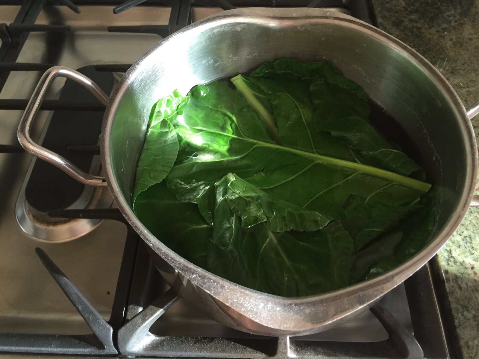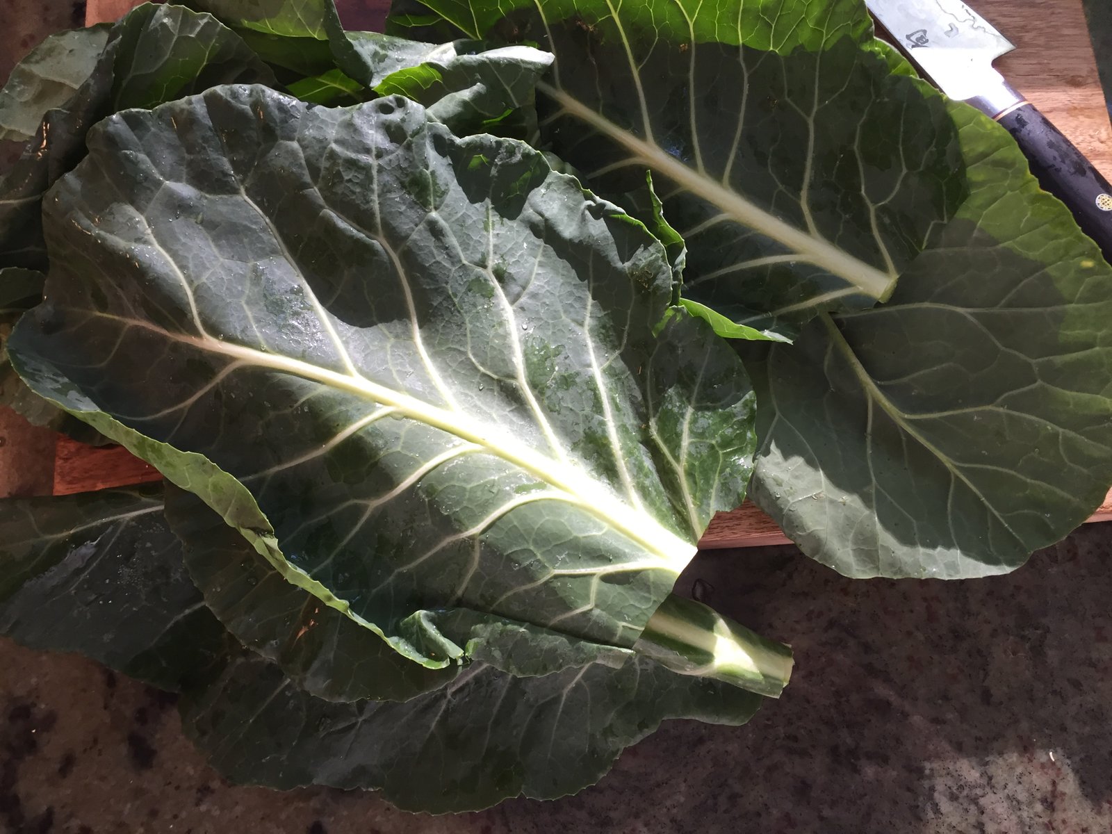 24 mustard green leaves (The recipe actually calls for 2 to 3 bunches of mustard greens but they are HUGE leaves and you can tear them in half so maybe just one bunch or you can use collard greens or fresh spinach)